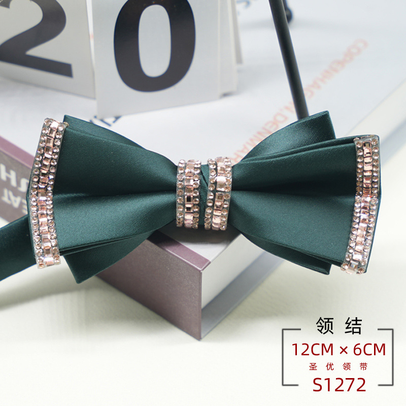 • 나비넥타이 S1272 다크그린 핑크다이아몬드