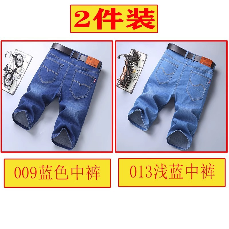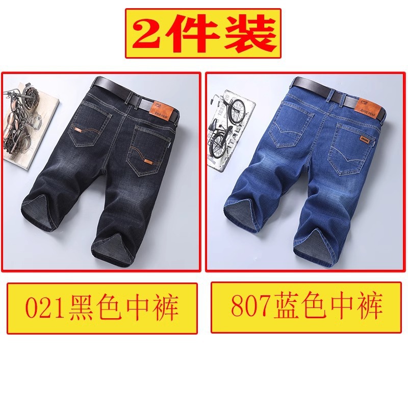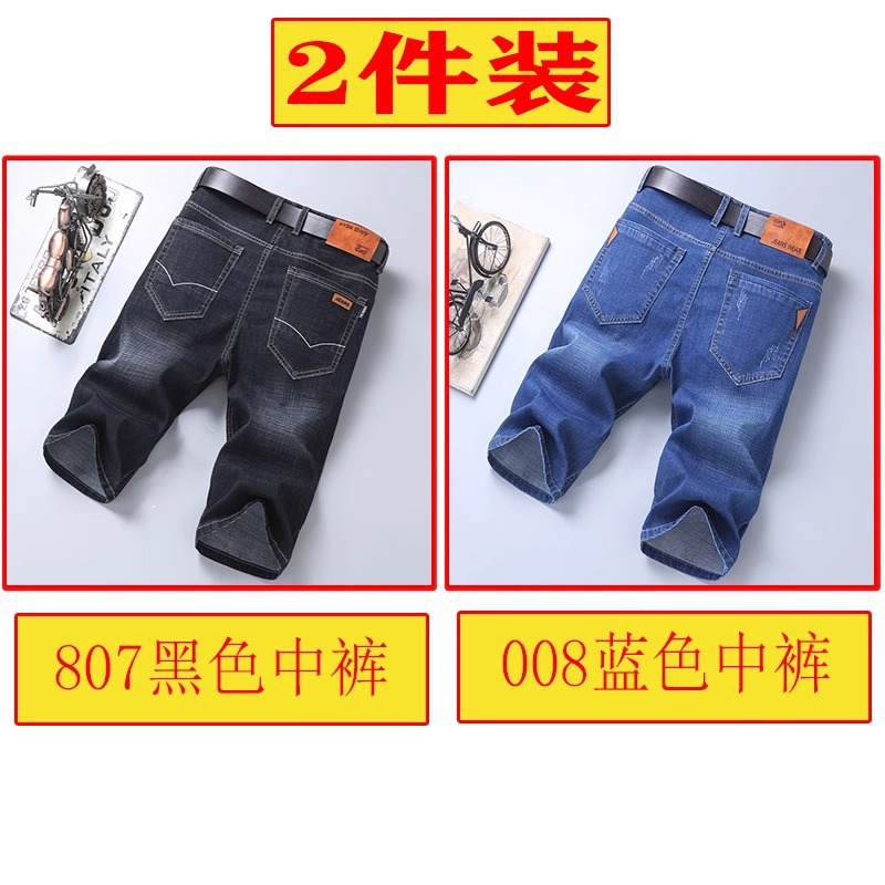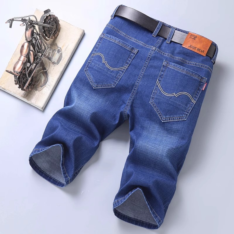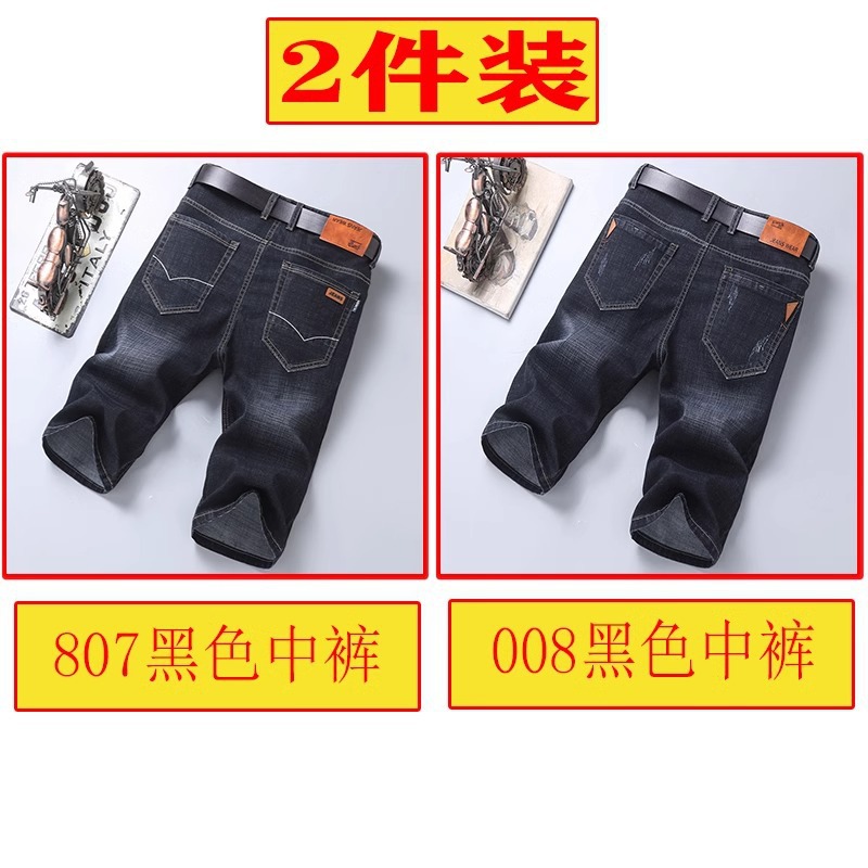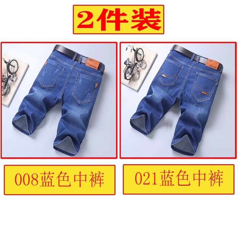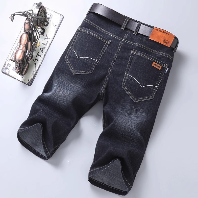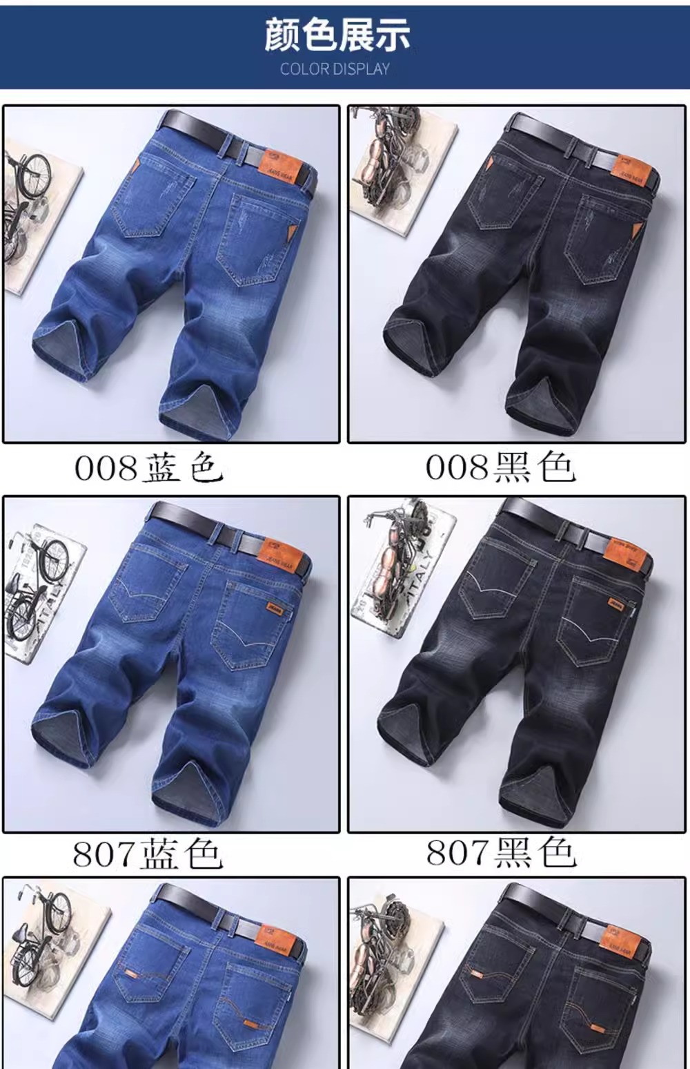 신축성 있는 데님 반바지 남성 여름 얇은 루즈 스트레이트 한국 스타일 트렌디 5부 캐주얼 미드팬츠 남성 7부 팬츠