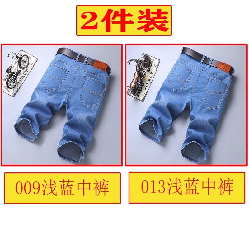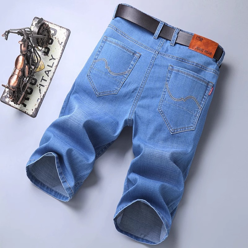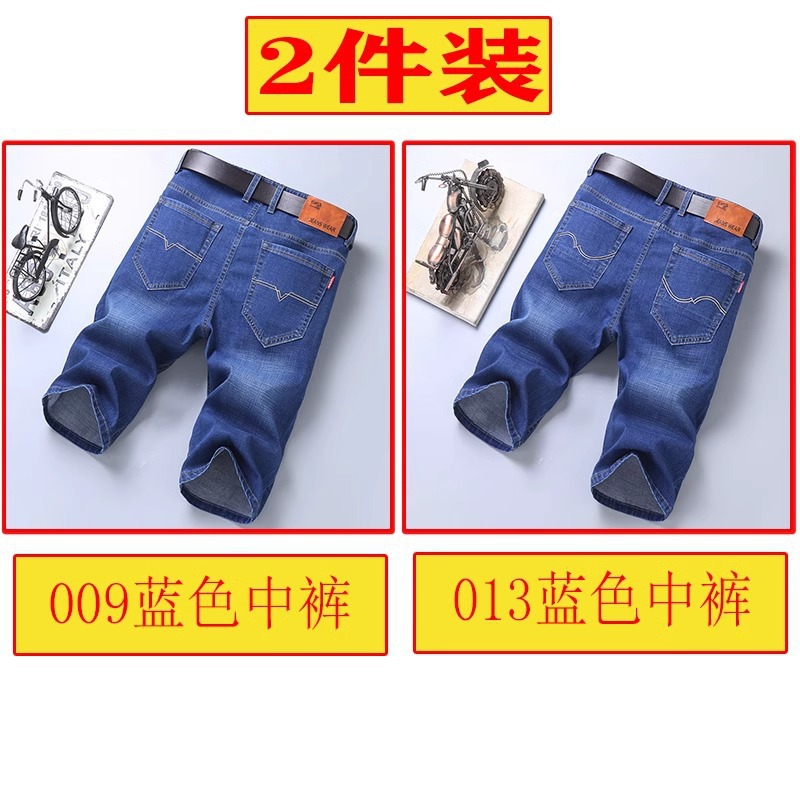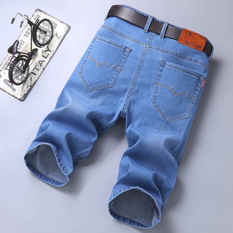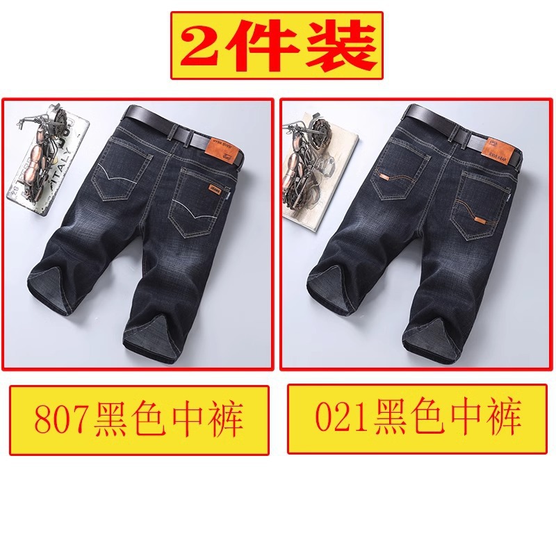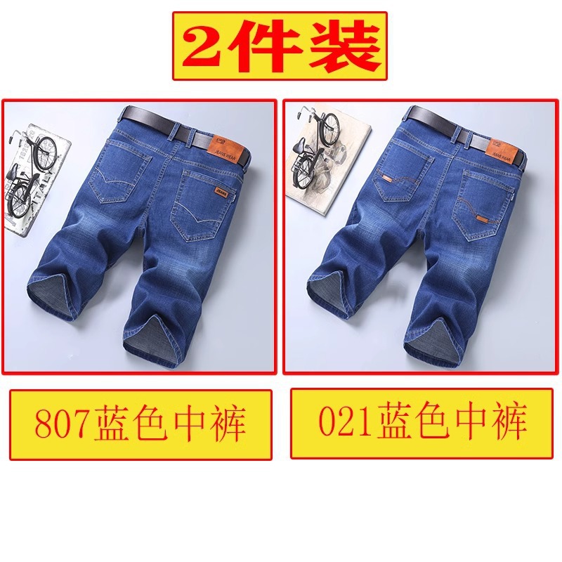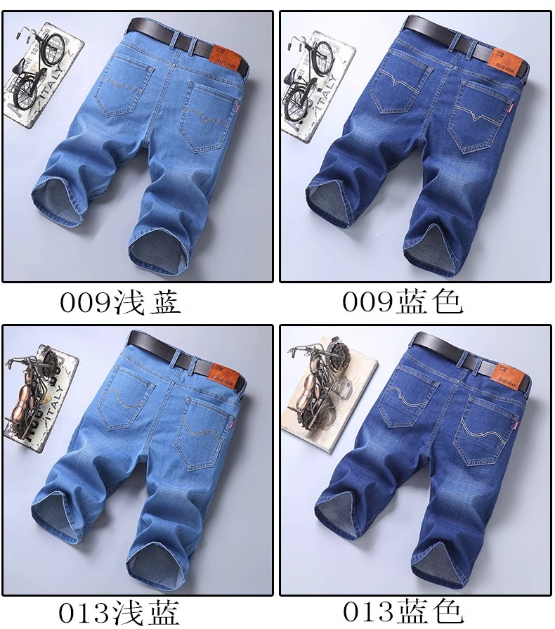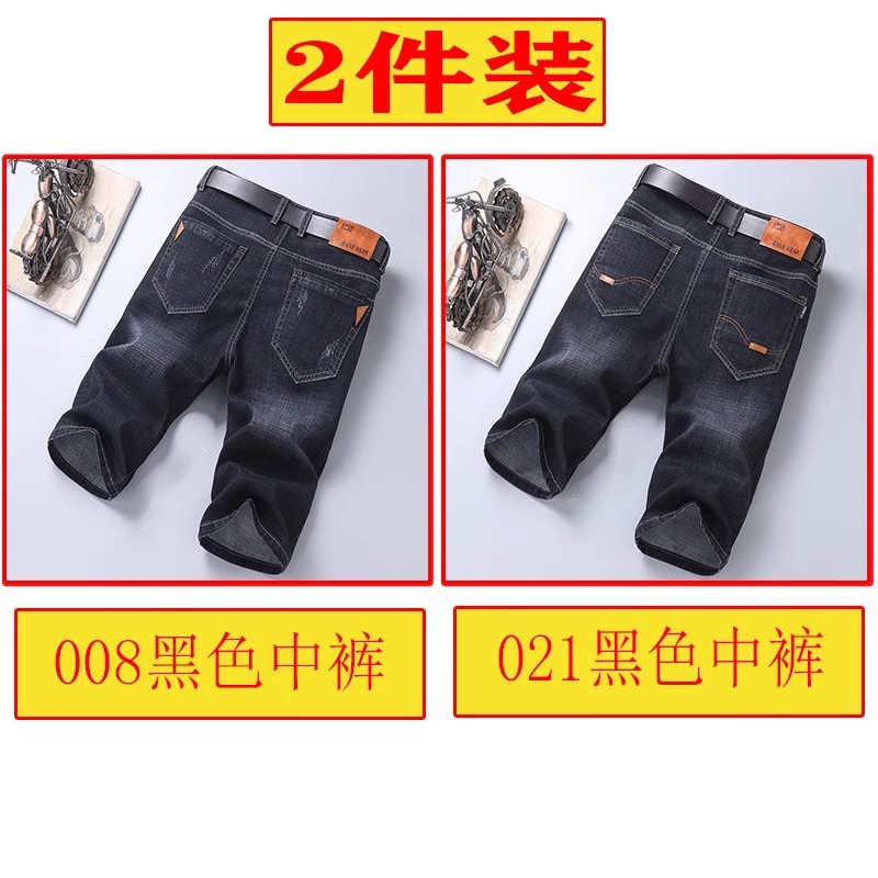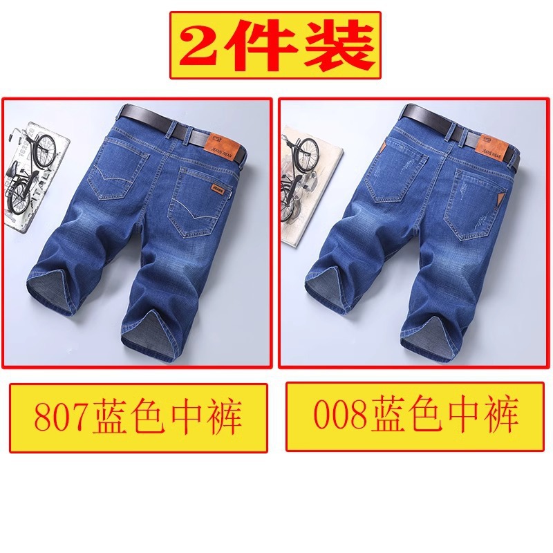 신축성 있는 데님 반바지 남성 여름 얇은 루즈 스트레이트 한국 스타일 트렌디 5부 캐주얼 미드팬츠 남성 7부 팬츠