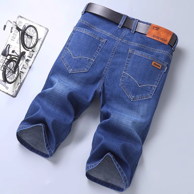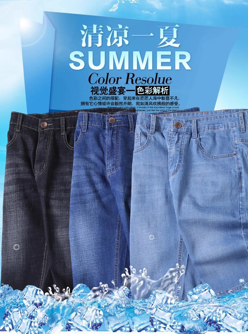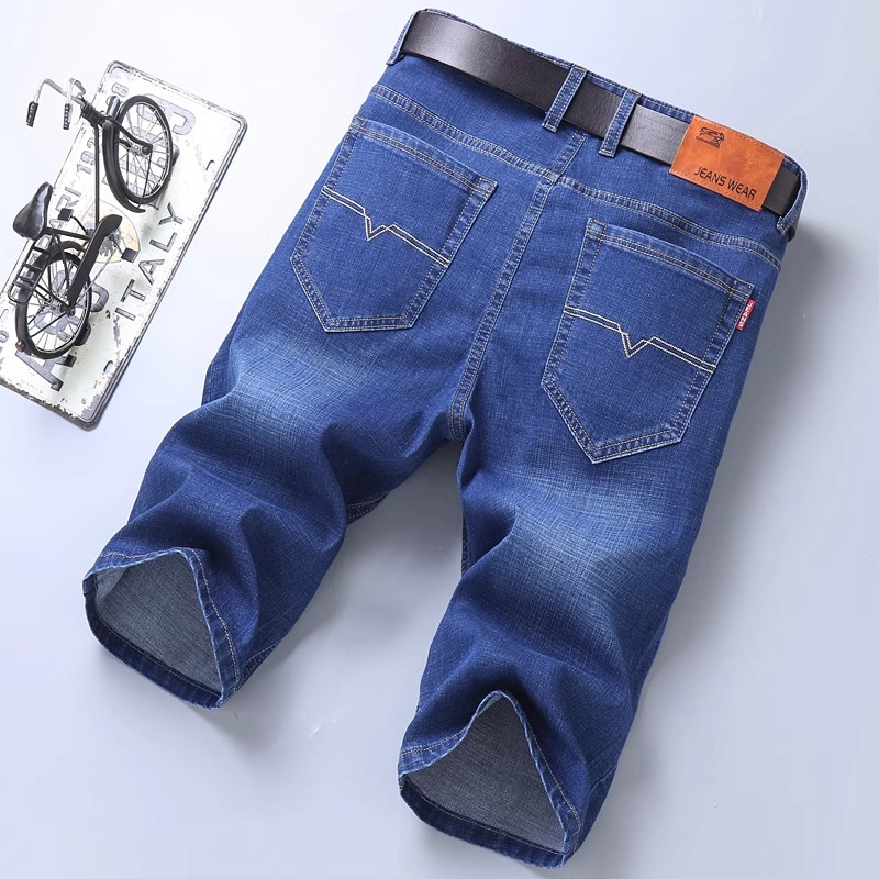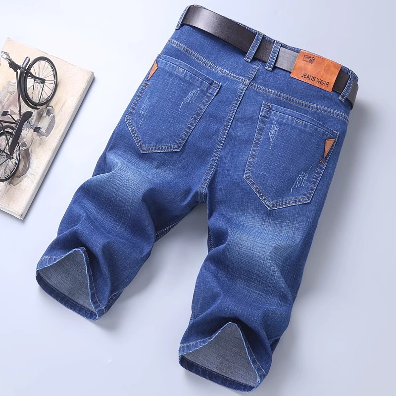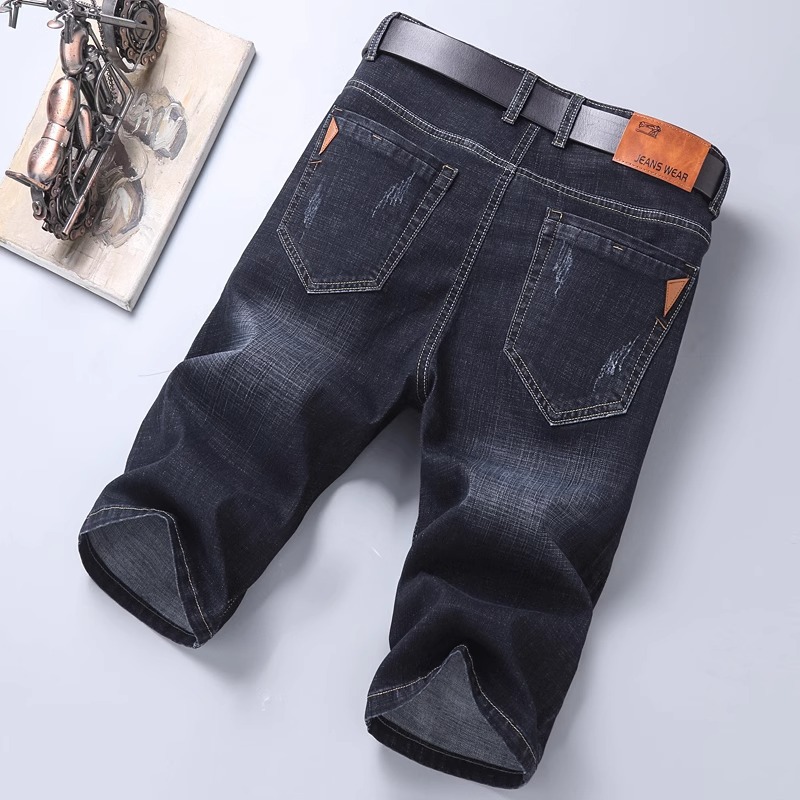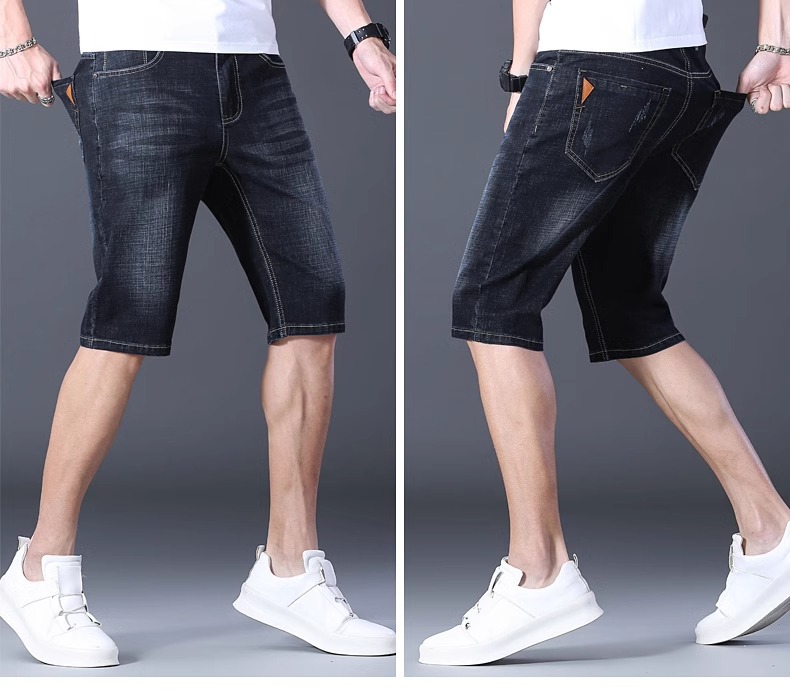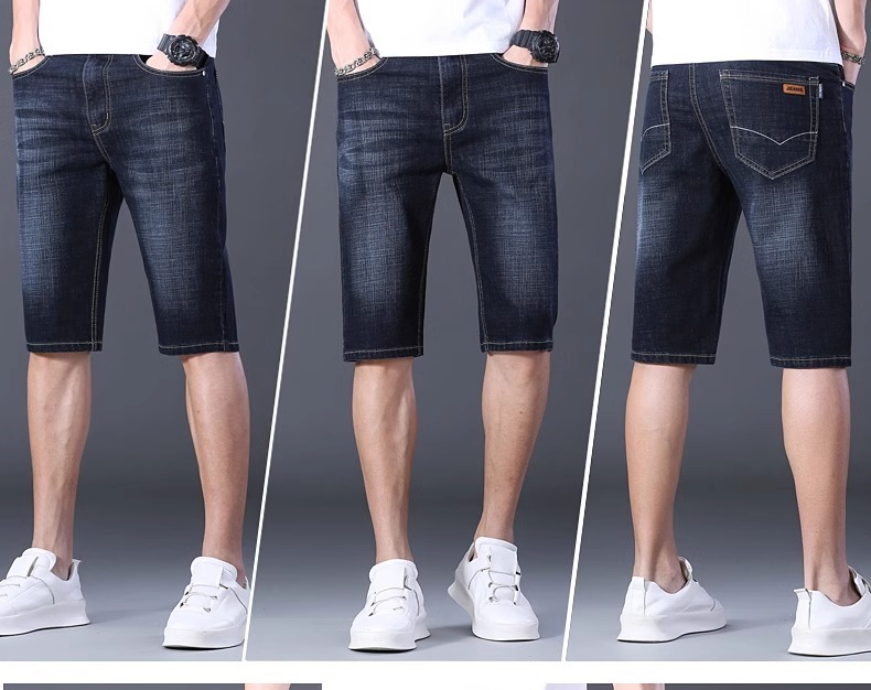 신축성 있는 데님 반바지 남성 여름 얇은 루즈 스트레이트 한국 스타일 트렌디 5부 캐주얼 미드팬츠 남성 7부 팬츠스토어 가기