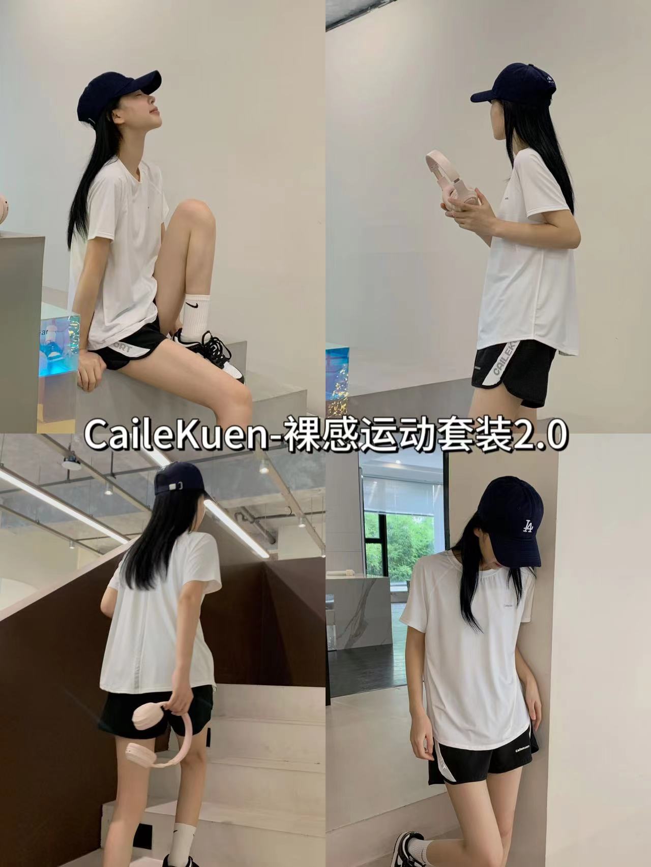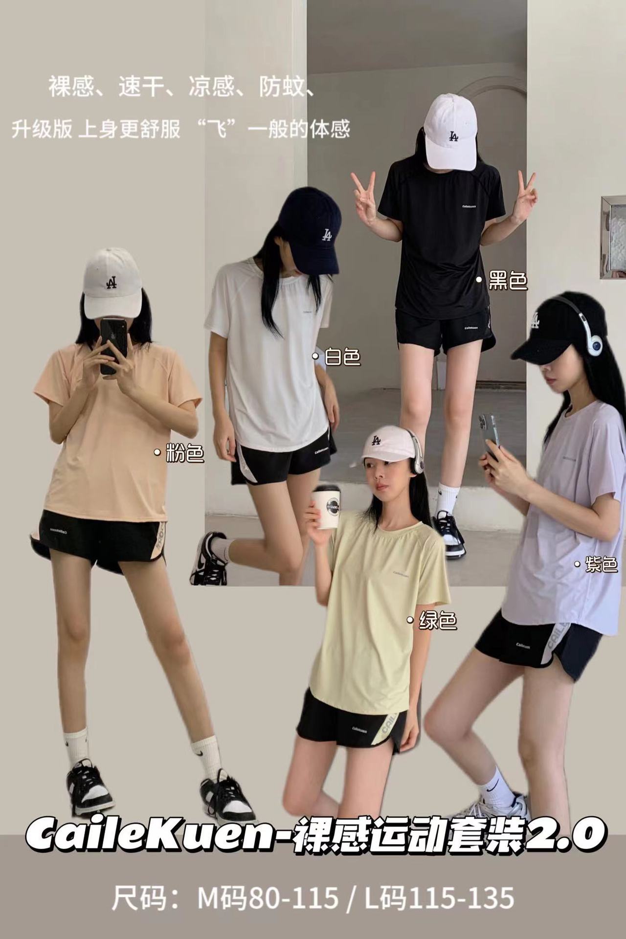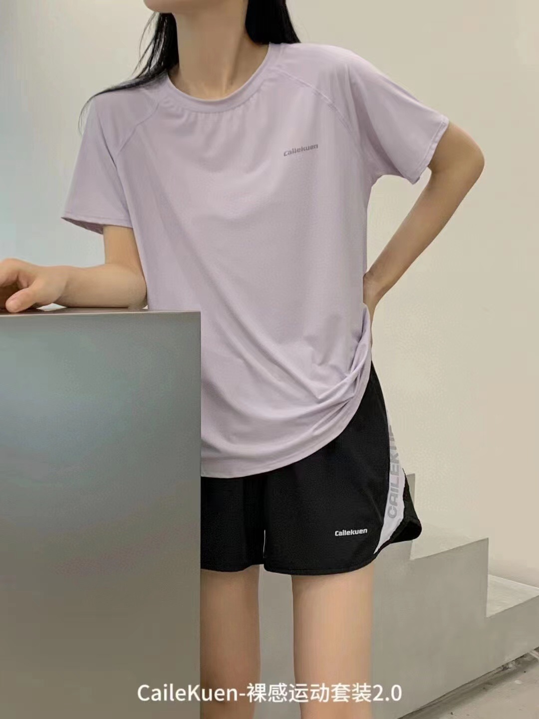 Cailekuen Naked 여성 스포츠 슈트 2.0 여름 편안한 커플 속건성 반팔 캐주얼 투피스 세트스토어 가기