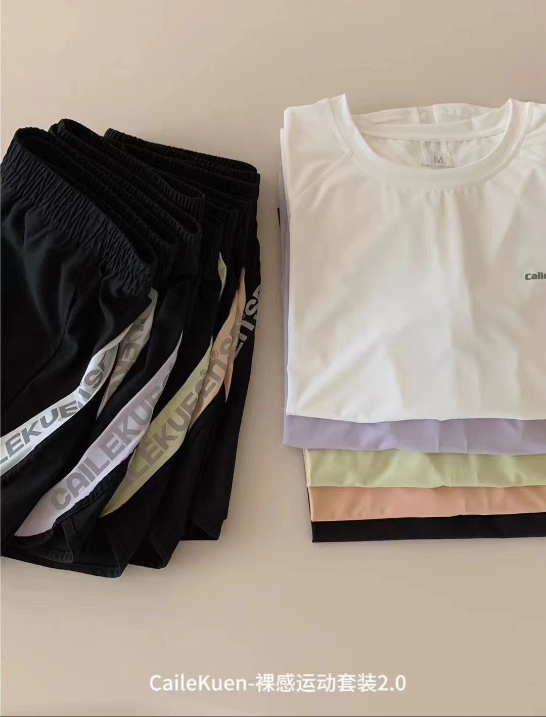 Cailekuen Naked 여성 스포츠 슈트 2.0 여름 편안한 커플 속건성 반팔 캐주얼 투피스 세트