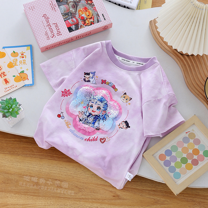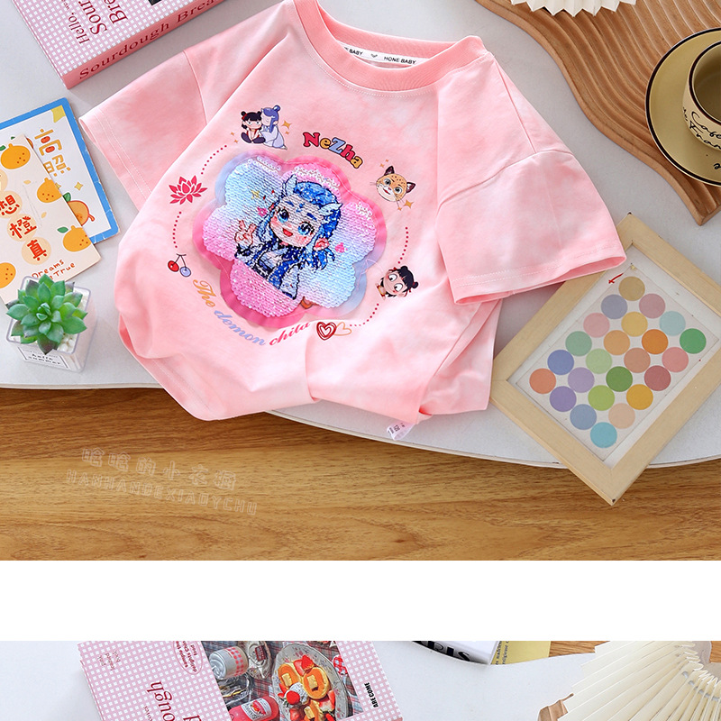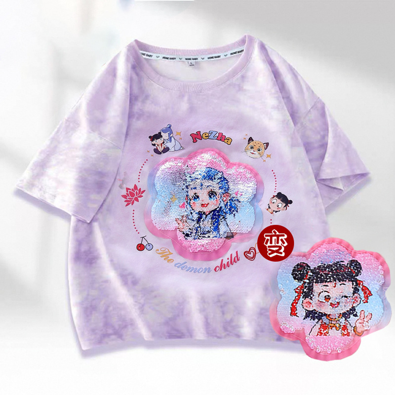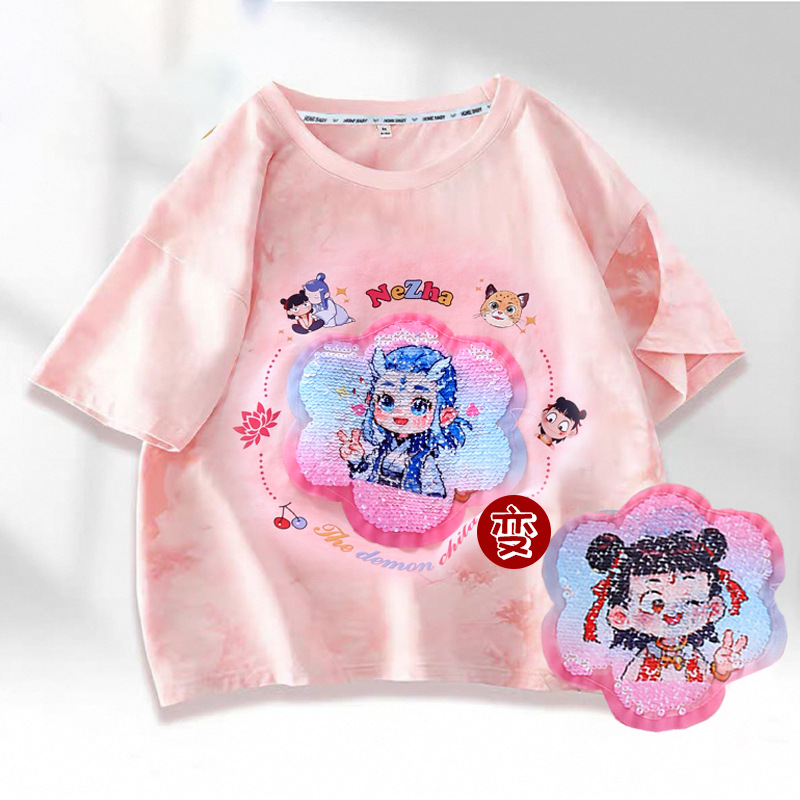 넥타이 염색 티셔츠 어린이 코튼 스퀸 색상 변경 레인보우 나자 캔디 컬러 반팔 티셔츠 루즈 캐주얼 셔츠