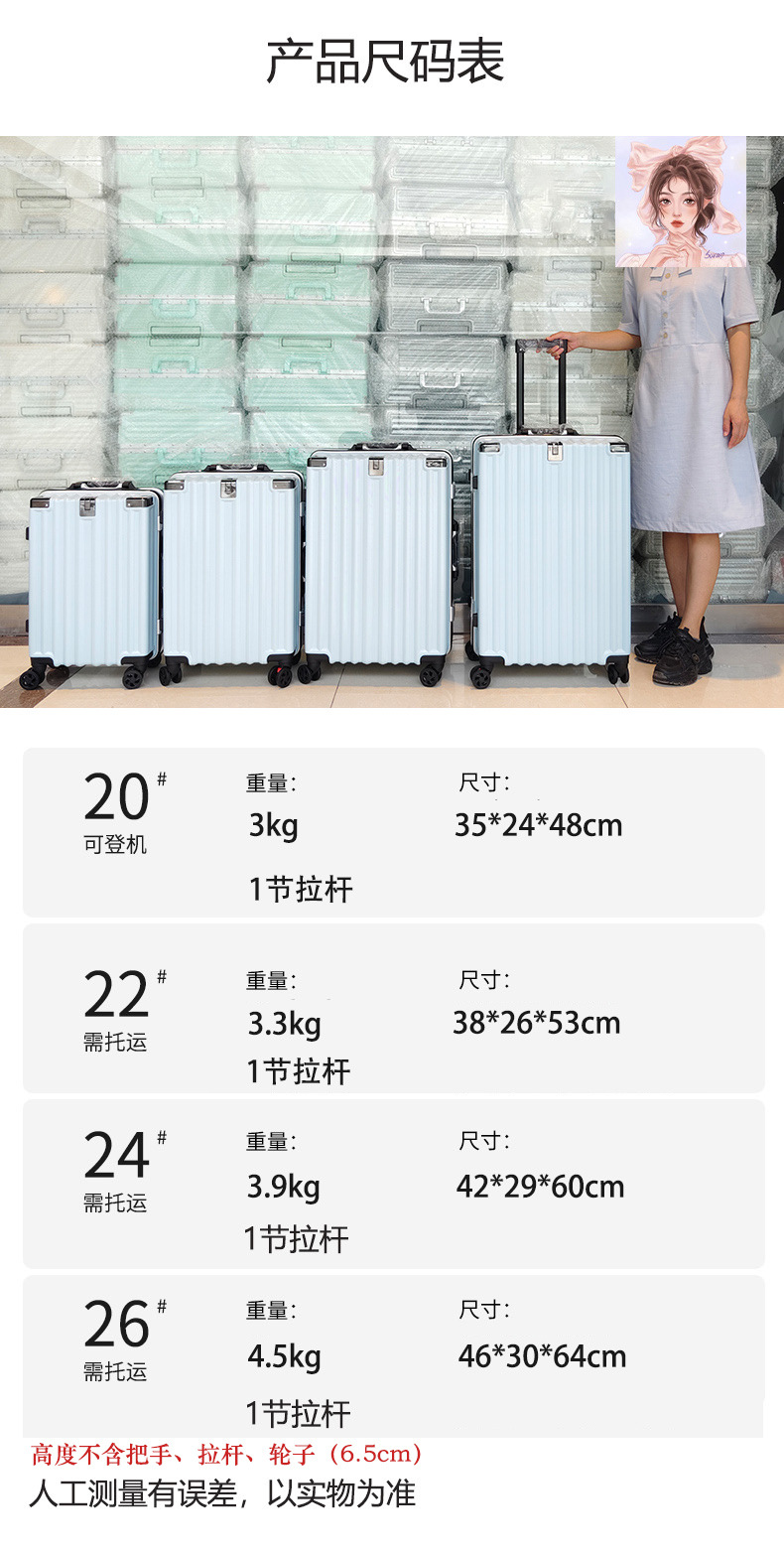 여행가방 트롤리 케이스 세련된 알루미늄 프레임 여행가방 범용 휠 24 여학생 26 내구성이 뛰어난 트렌디한 비밀번호 가죽 케이스스토어 가기