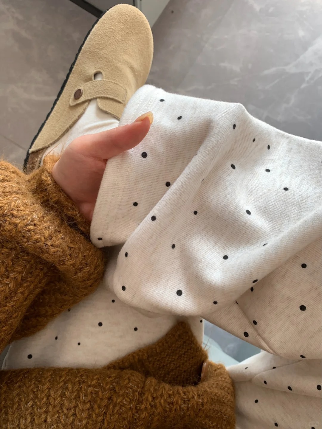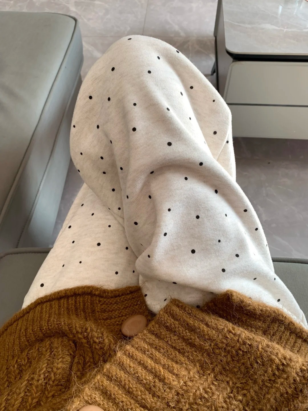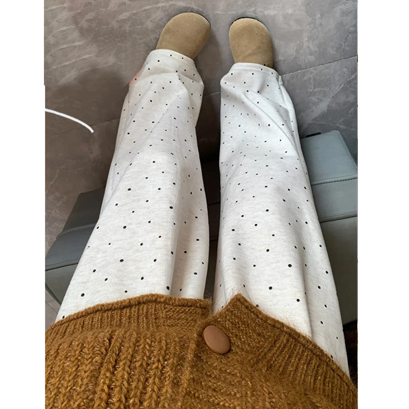 봄, 여름, 가을 여성용 릴렉스 레이지 폴카 도트 캐주얼 팬츠 루즈하고 편안한 스트레이트 심플 스포츠 와이드 팬츠