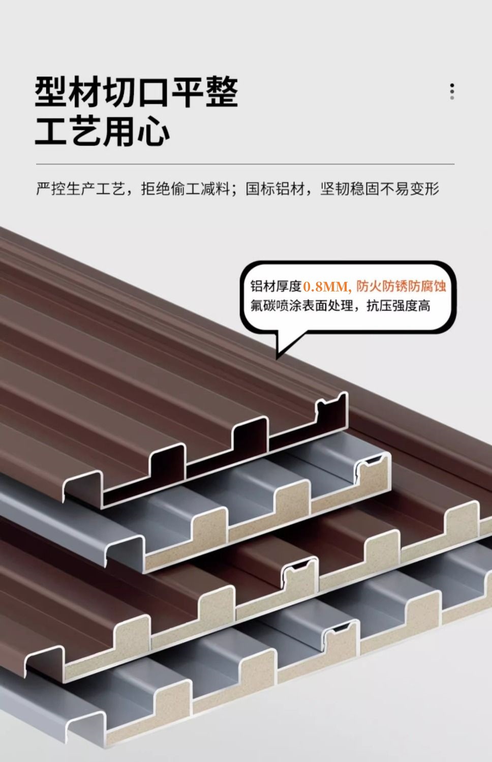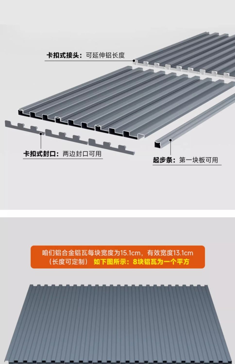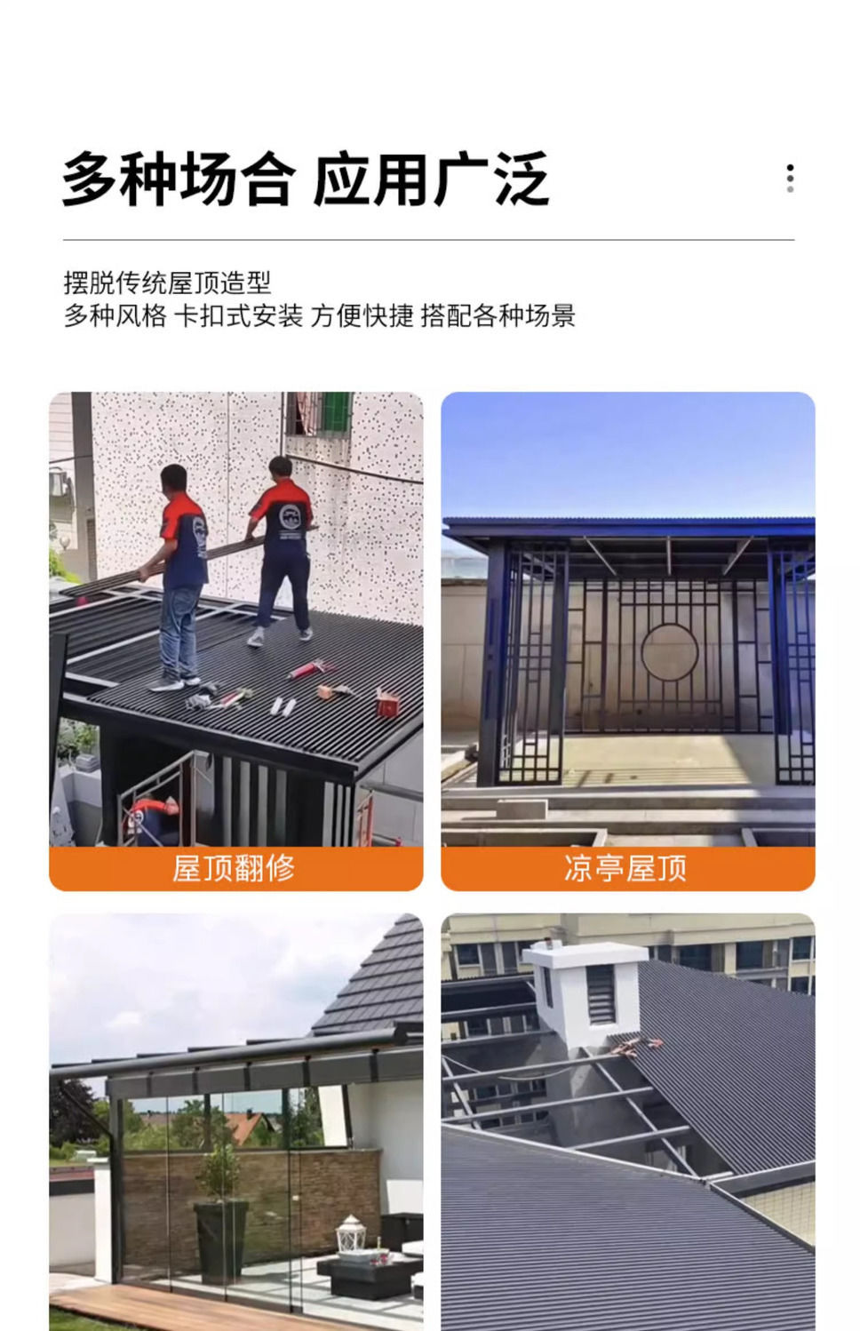 알루미늄 합금 지붕 타일, 이중 단열 알루미늄 타일, 만리장성 오목 및 볼록 작은 판자, 차양, 캐노피, 선룸, 파빌리온, 자외선 차단