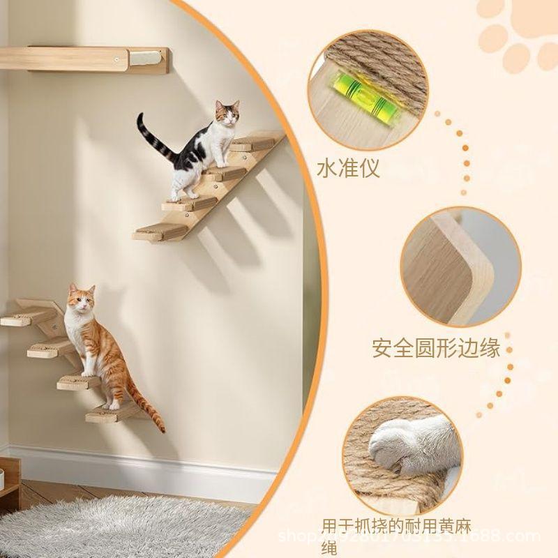 원목 벽걸이형 고양이 클라이밍 프레임, 편리하고 탈부착 가능한 고양이 계단, 고정형 벽면 고양이 사다리