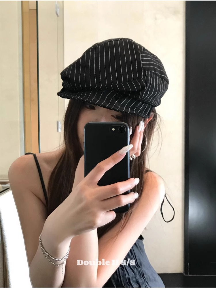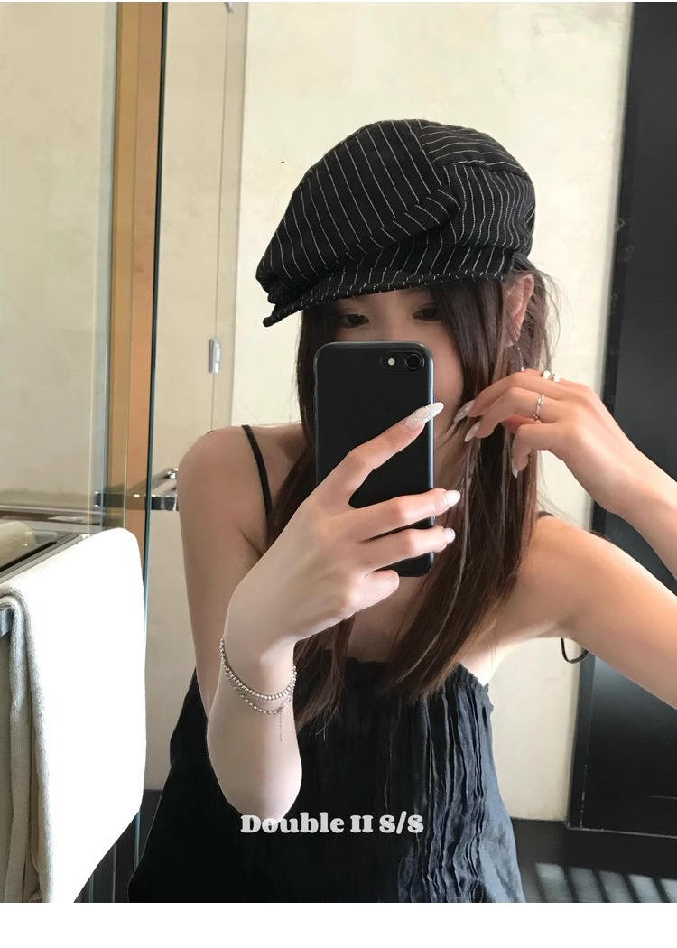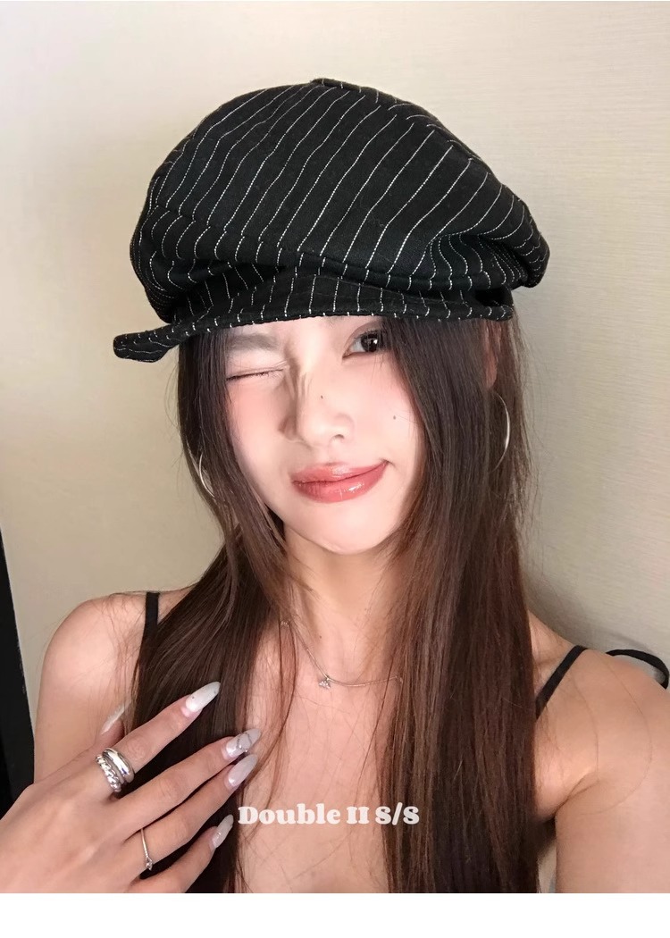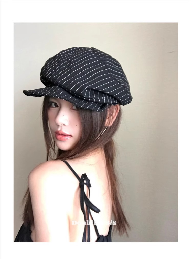빈티지 일본 스타일 대학 스타일 불규칙한 줄무늬 뉴스 보이 모자 여자 여름 경량 베레 우아한 올 매치 팔각형 모자스토어 가기