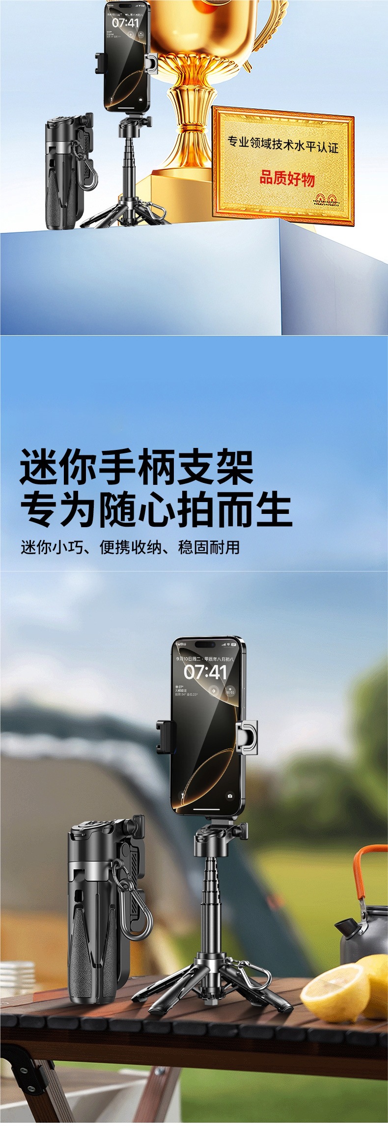 미니 휴대 전화 셀카 스틱 2025 새로운 여행 휴대용 셀카 3-in-one 플로어 스탠딩 삼각대 핸드 헬드 안정기
