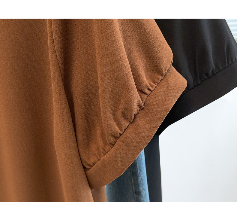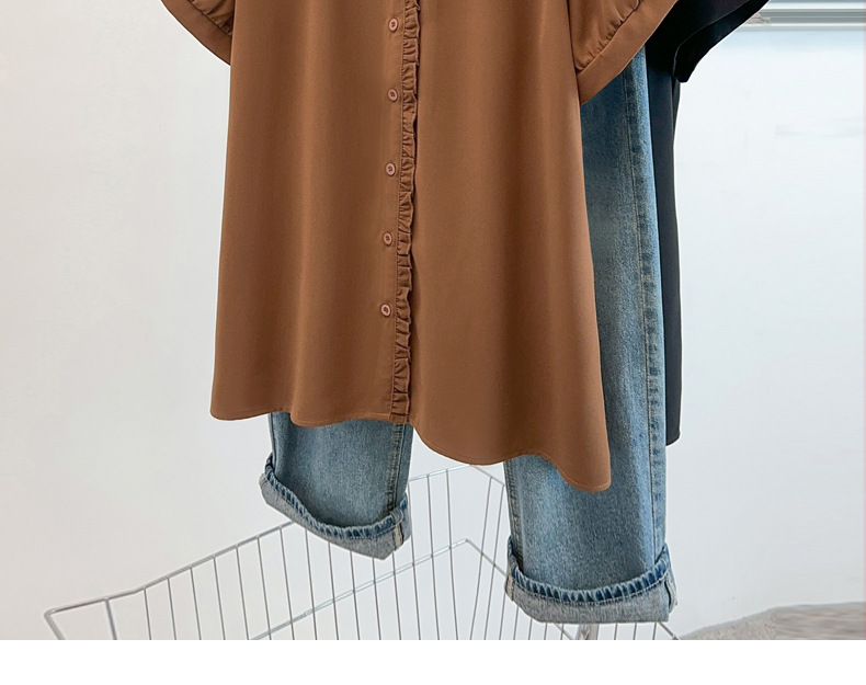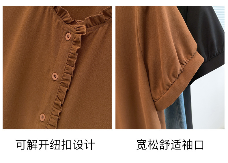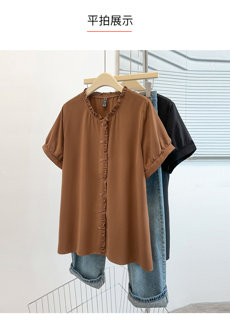플러스 사이즈 짧은 소매 쉬폰 셔츠 여성용 서양식 여름 통통녀 느슨한 슬림 셔츠 탑 벨리 커버 셔츠 25009T스토어 가기