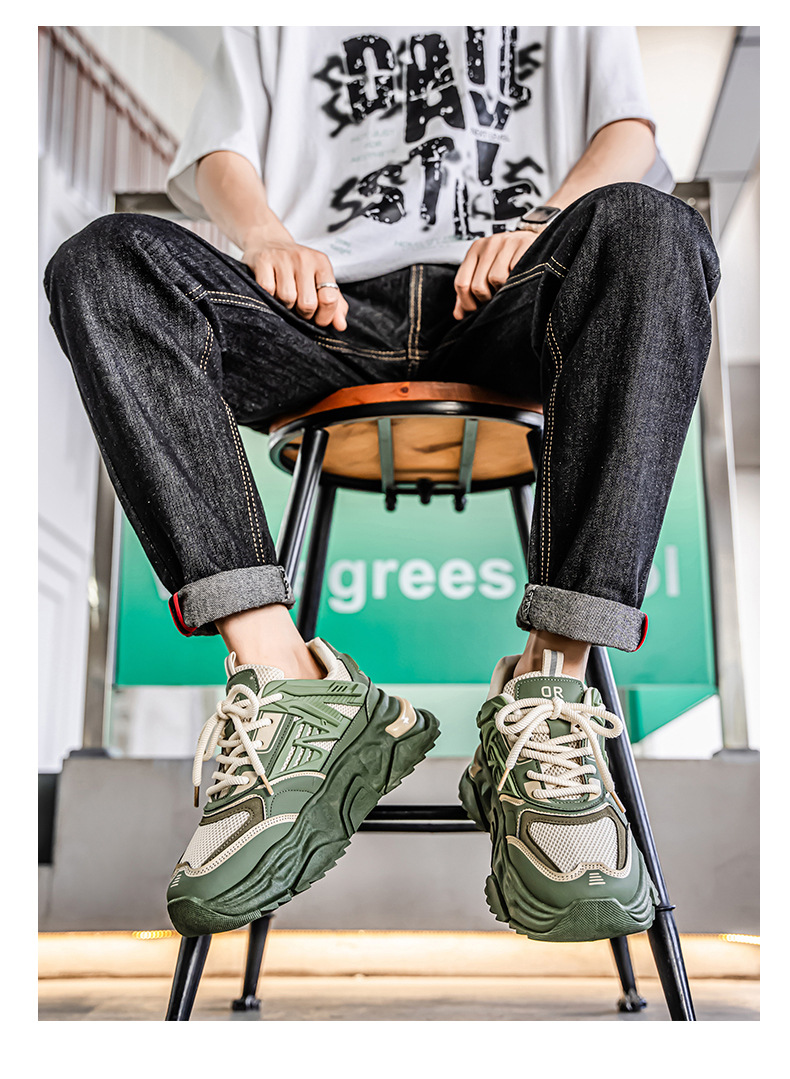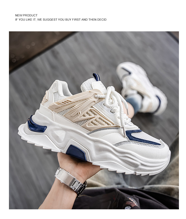 남성 신발 새로운 봄과 여름 메쉬 신발 통기성 소프트 단독 스포츠 캐주얼 신발 십대 높이 증가 두꺼운 단독 토르 트렌디 신발스토어 가기