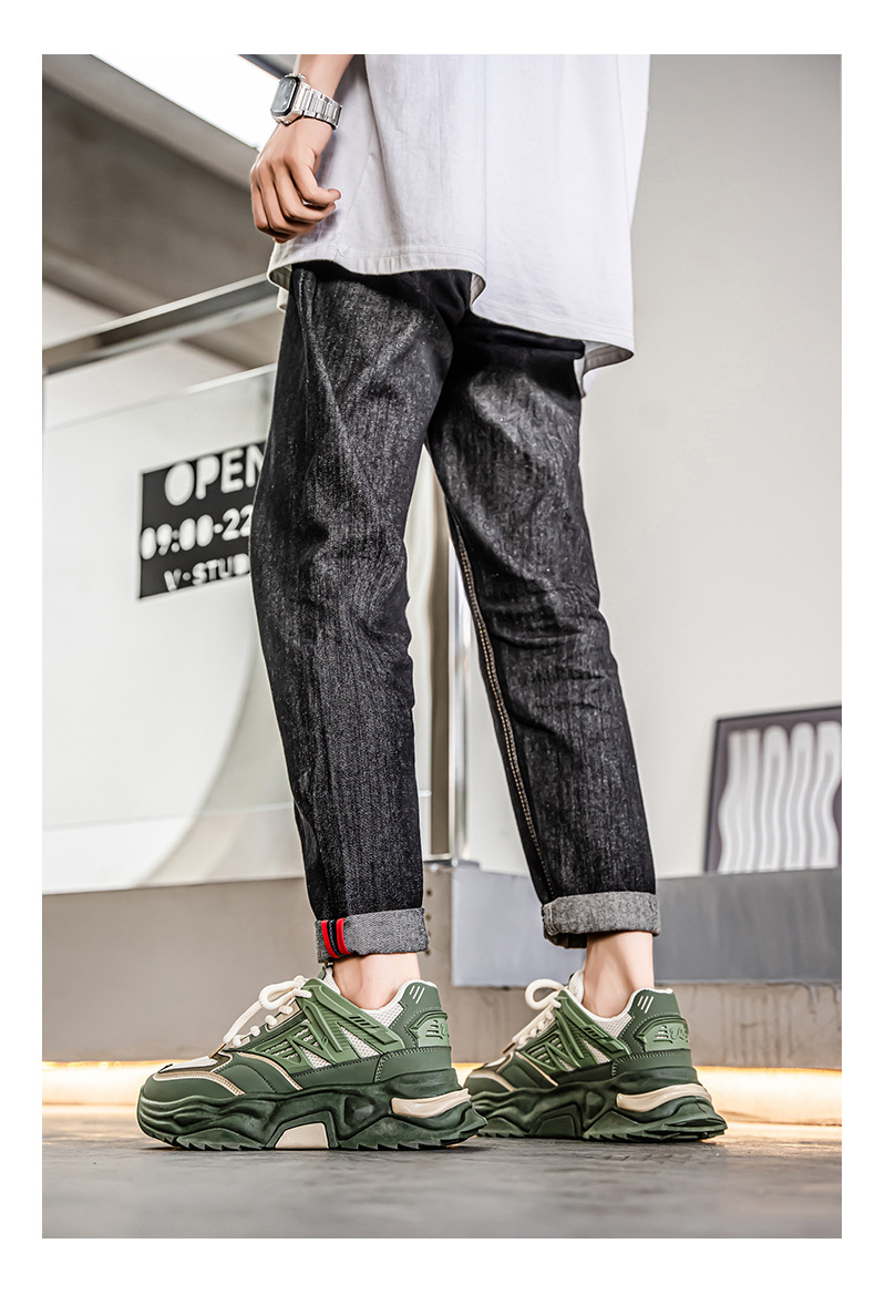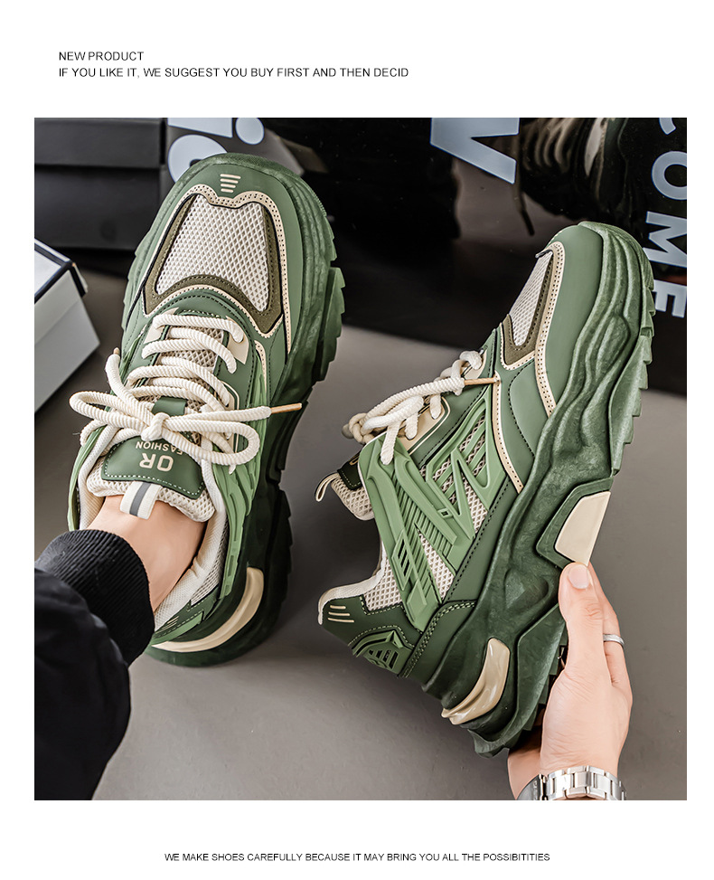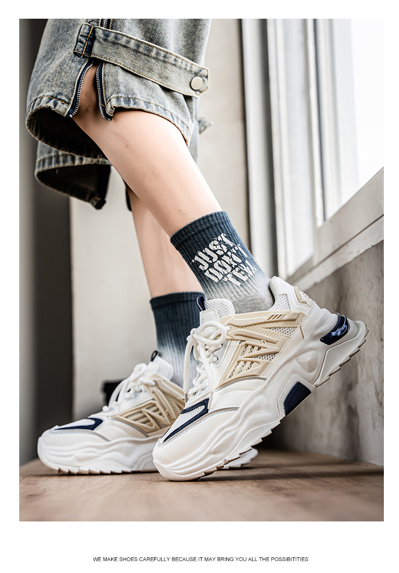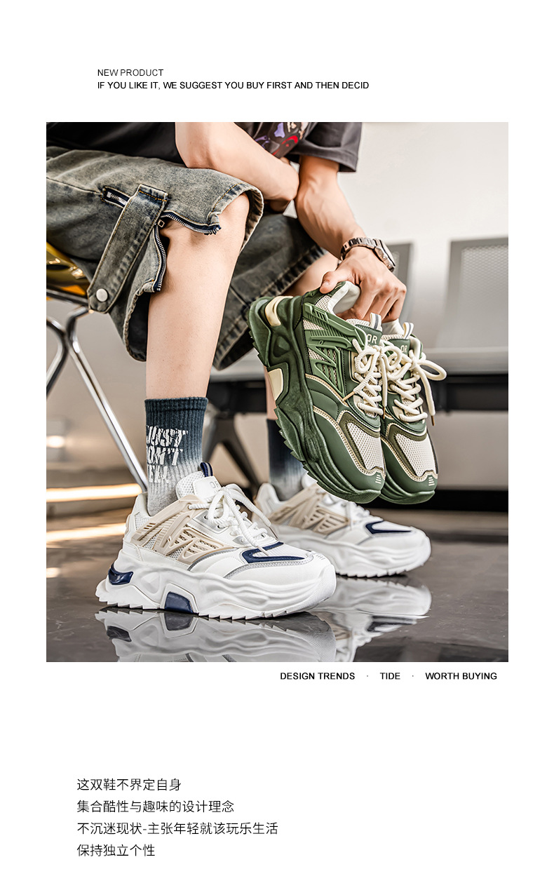남성 신발 새로운 봄과 여름 메쉬 신발 통기성 소프트 단독 스포츠 캐주얼 신발 십대 높이 증가 두꺼운 단독 토르 트렌디 신발