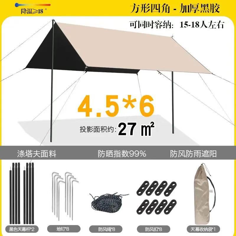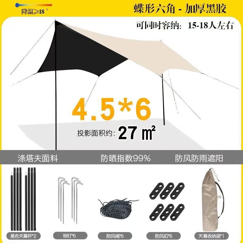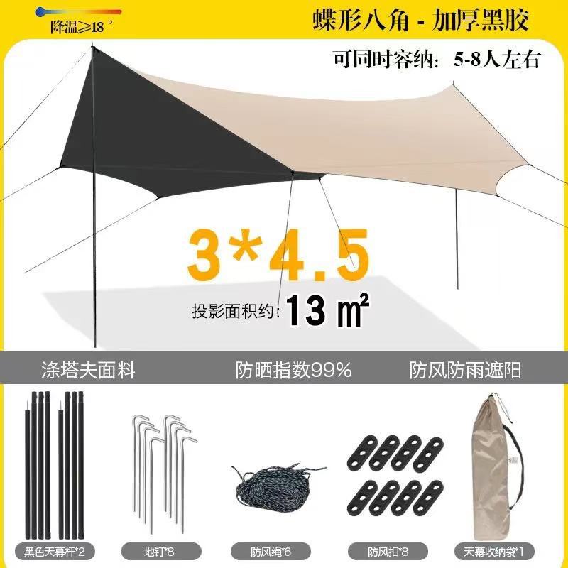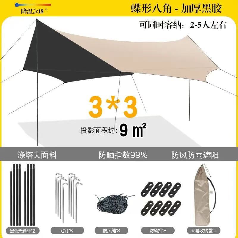 야외 검은 접착제 캐노피 휴대용 캠핑 차양 선 스크린 텐트 팔각형 넙치 모양 캠핑 피크닉스토어 가기