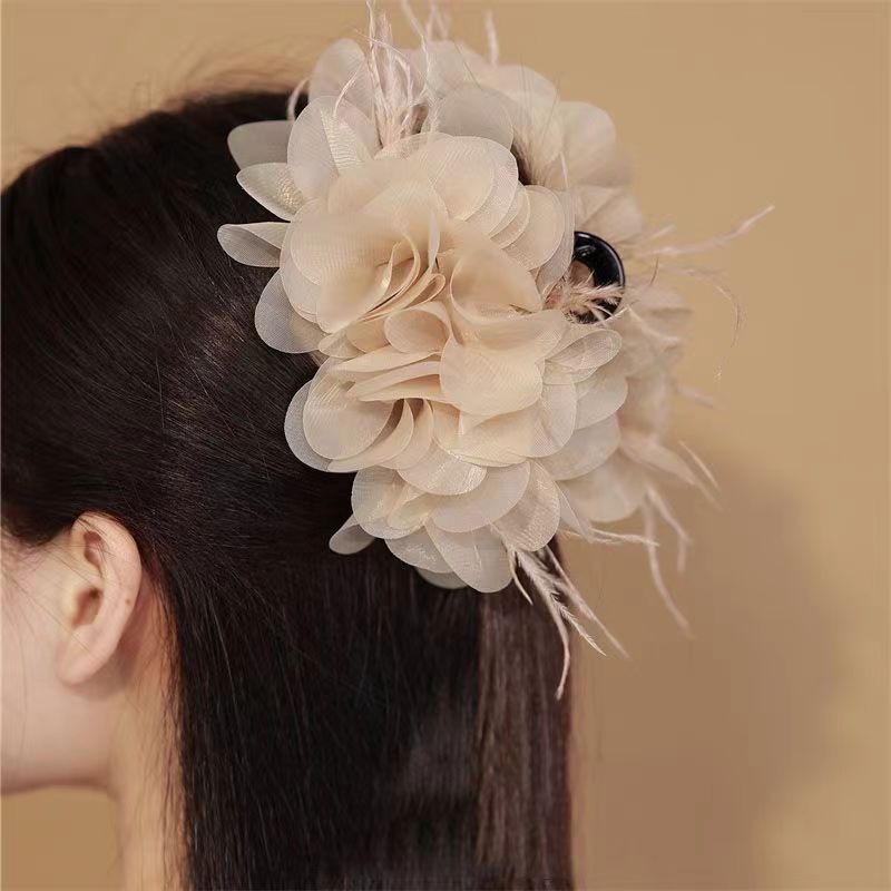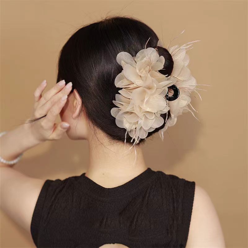새로운 꽃 모양 깃털 집게핀, 고급스럽고 세련된 샤크클립, 여성용 뒷머리 장식, 우아하고 고급스러운 액세서리, 라이트 럭셔리 스타일