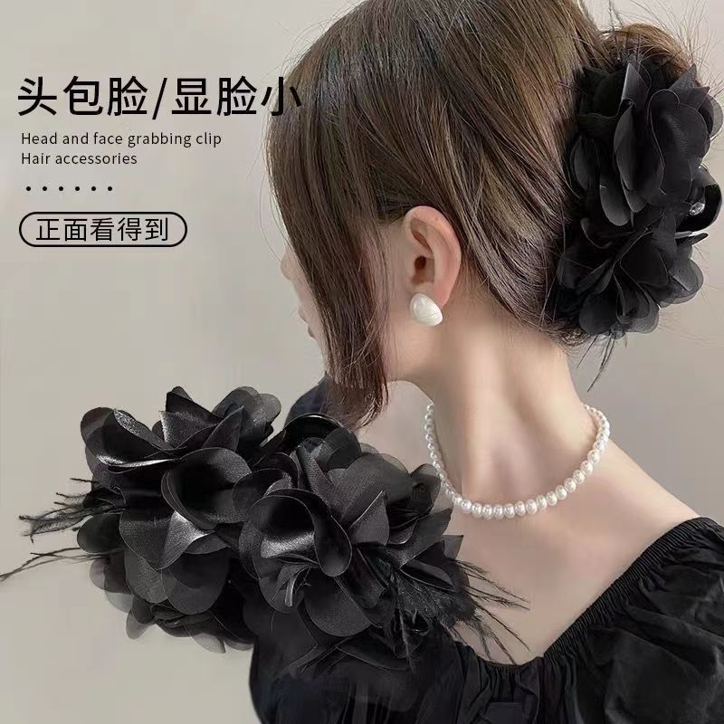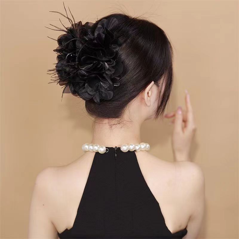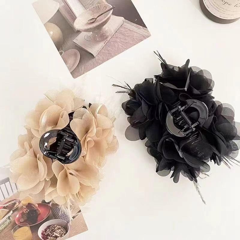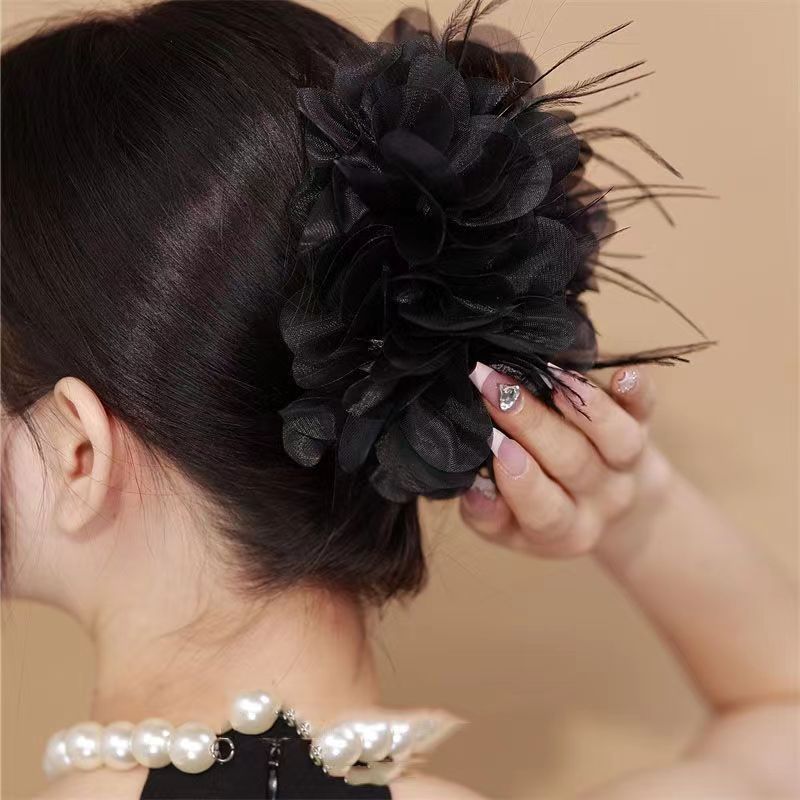 새로운 꽃 모양 깃털 집게핀, 고급스럽고 세련된 샤크클립, 여성용 뒷머리 장식, 우아하고 고급스러운 액세서리, 라이트 럭셔리 스타일스토어 가기