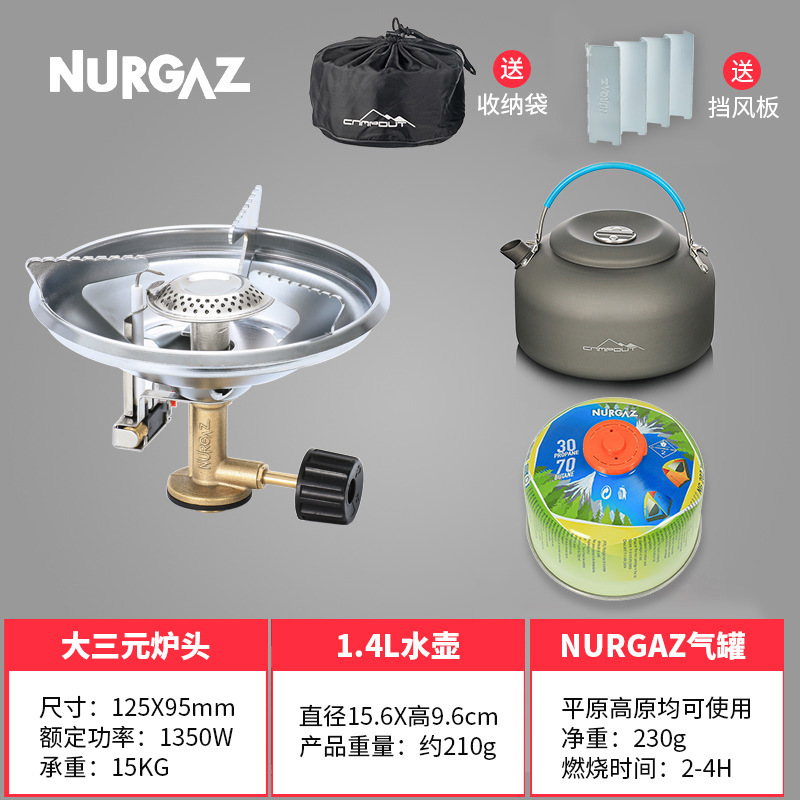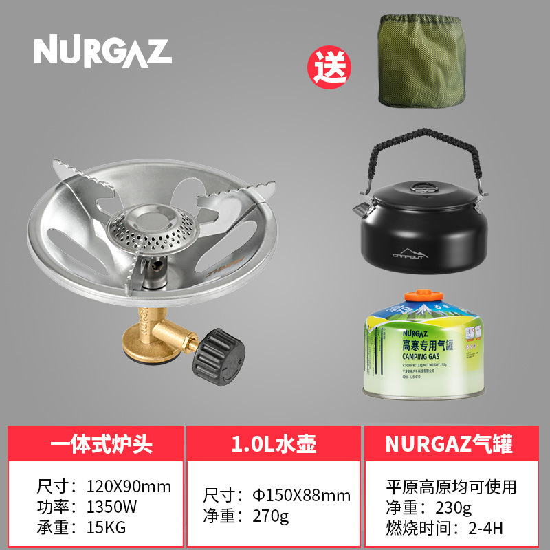 • 대형 삼원 스토브/전자 점화 + 보관 가방 + 가스 탱크 230g + 1.4L 주전자