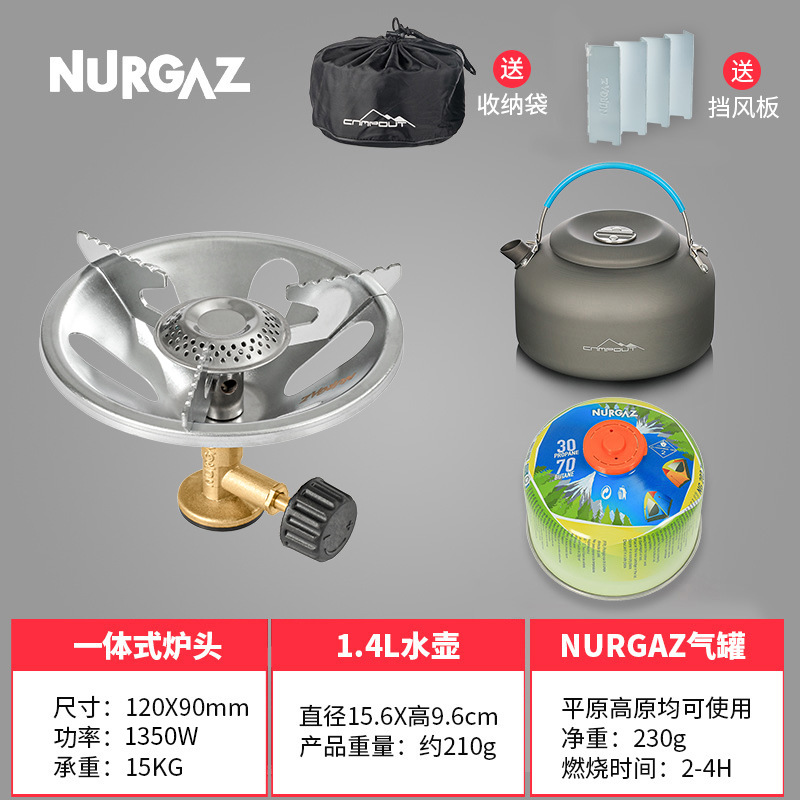 • 대형 삼원 스토브/전자 점화 + 보관 가방 + 가스 탱크 230g + 1.4L 주전자 + 앞 유리