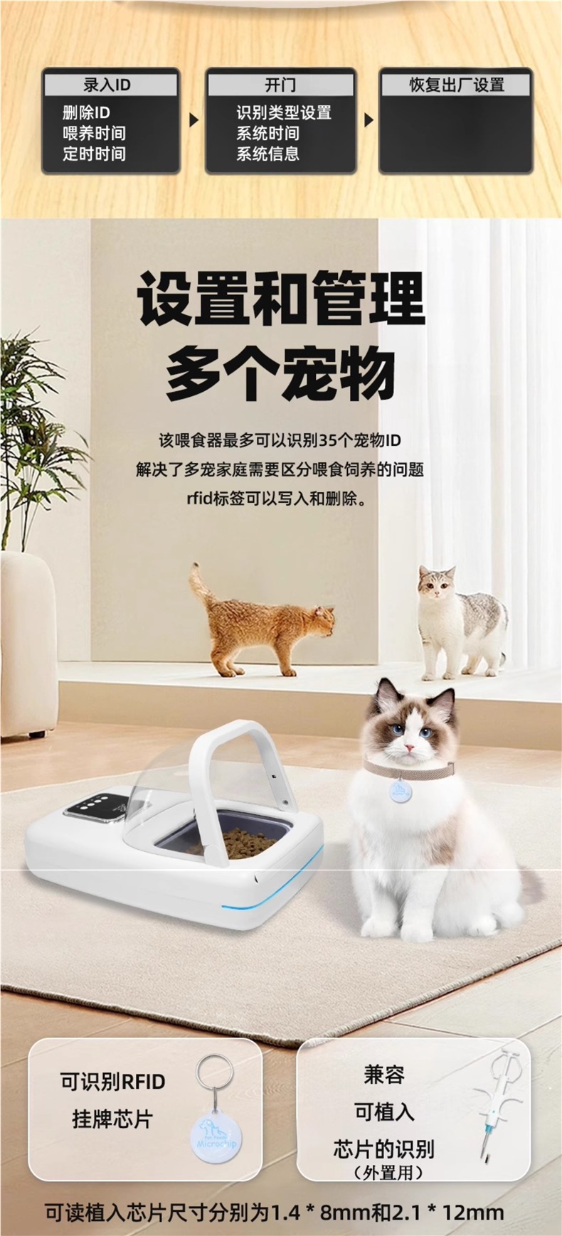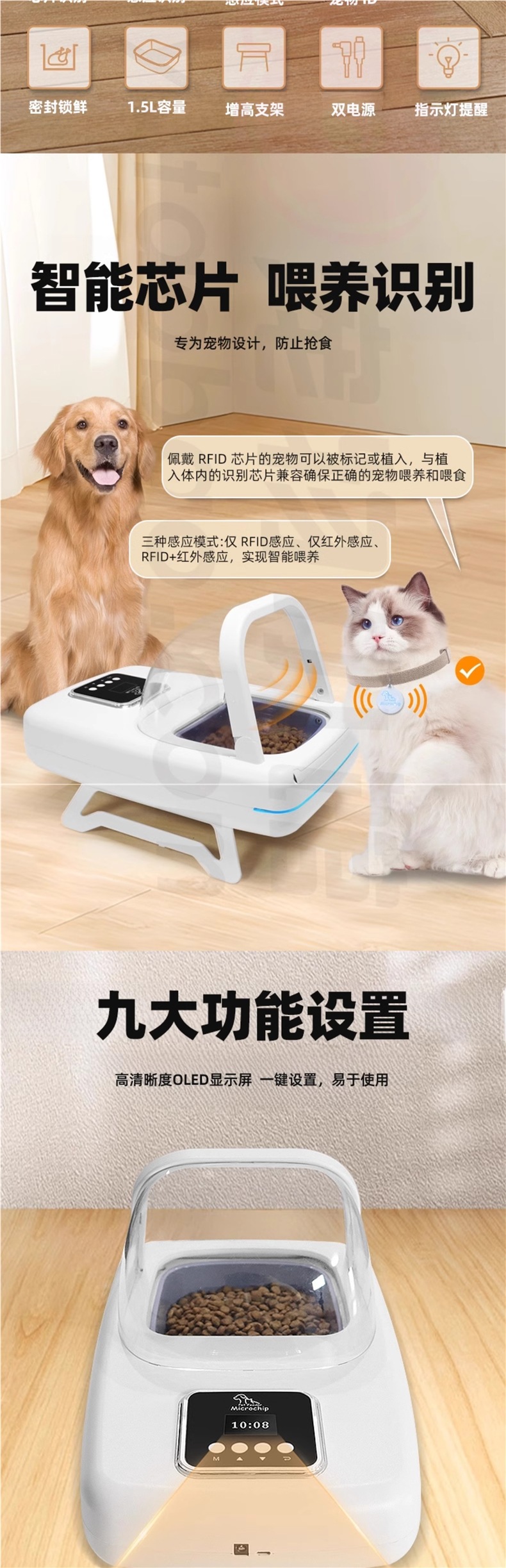 스마트 칩 인식 적외선 감지 멀티 애완 고양이 자동 급식기 애완 고양이 그릇 타이밍 도둑 방지