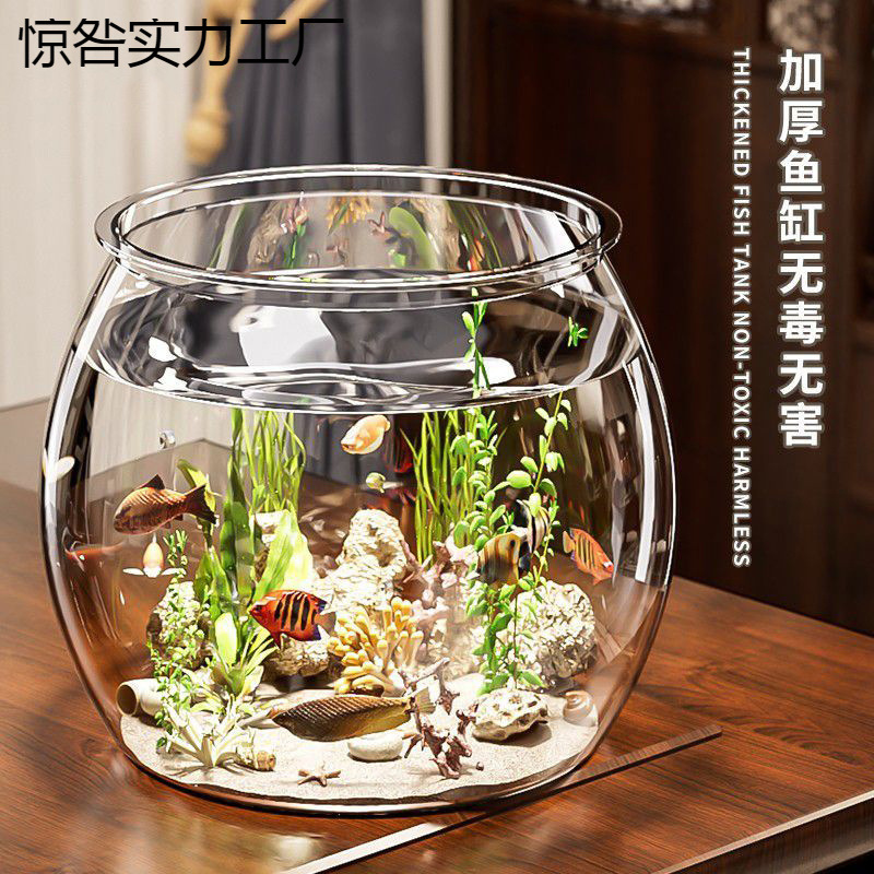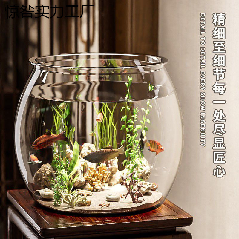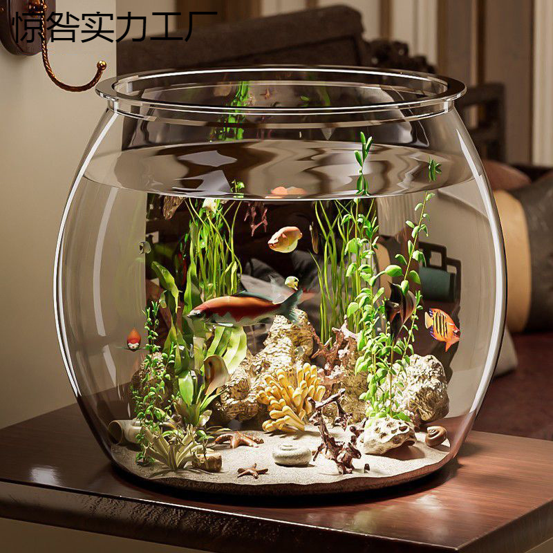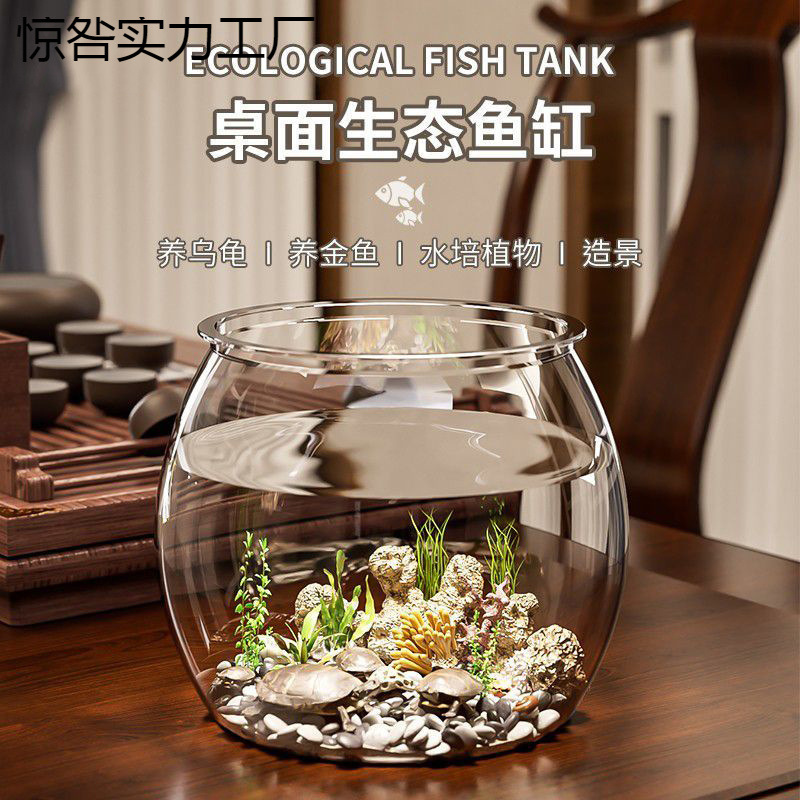 물고기 탱크 작은 가정용 모조 유리 낙하 방지 거실 사무실 금붕어 녹색 식물 마이크로 풍경 생태 탱크 새로운 애완 동물스토어 가기