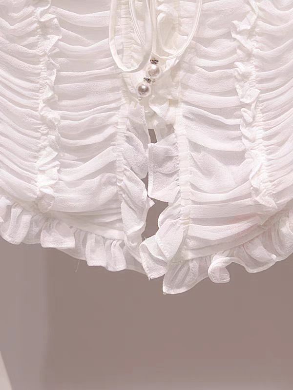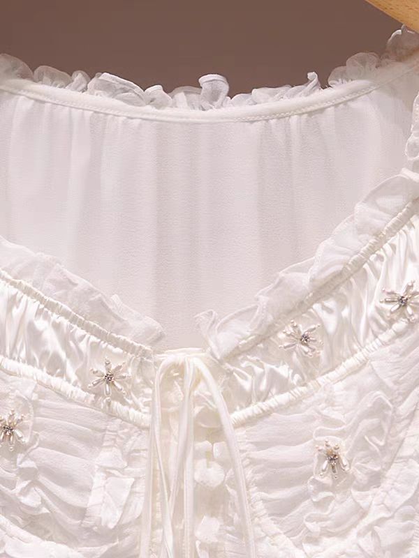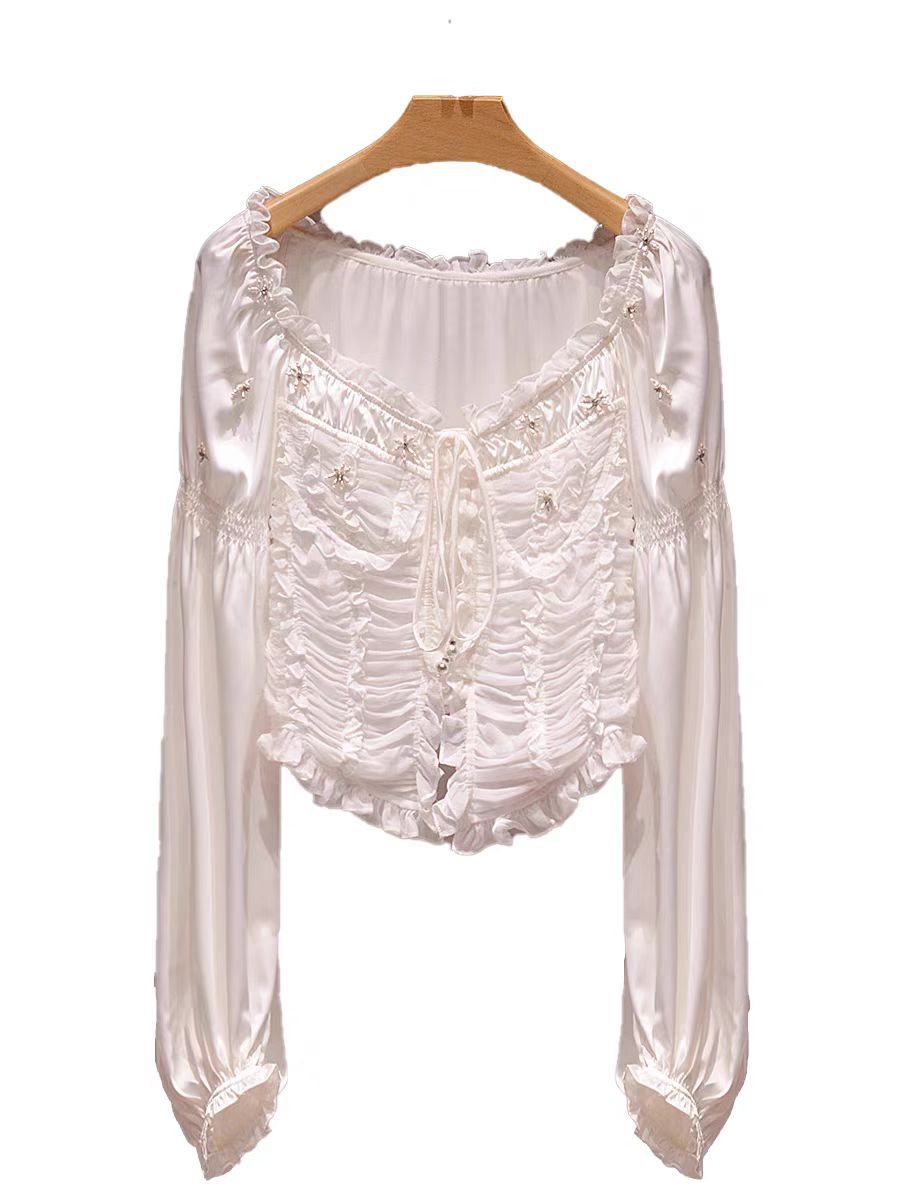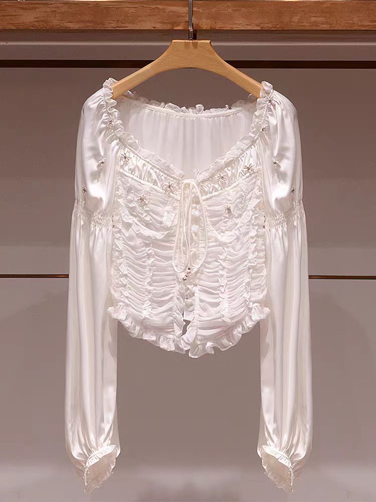 셔츠 디자인 감각 수석 JOOVA2025 봄 새로운 활 스퀘어 칼라 긴 소매 흰색 쉬폰 셔츠 여성