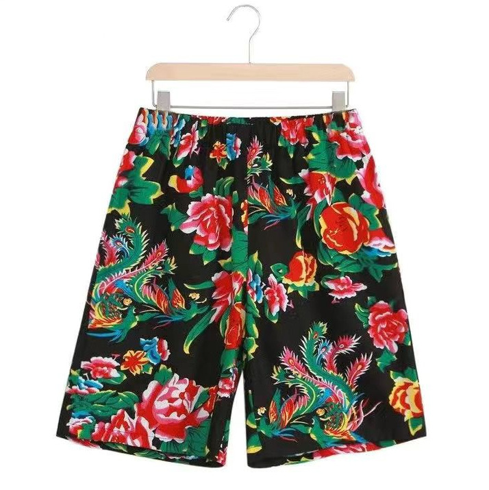• 동북풍 플라워 패턴 반바지 - 블랙