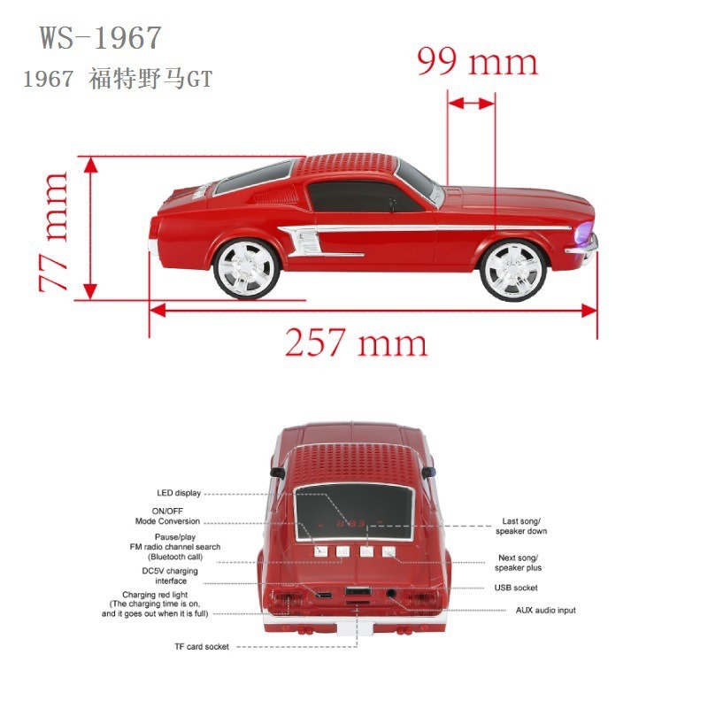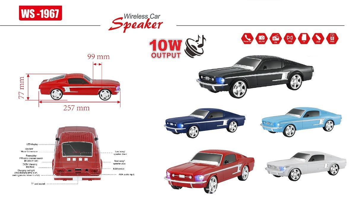 WS1965 포드 머스탱 GT 자동차 모델 블루투스 스피커 중저음 무선 오디오 선물 휴대용 스피커