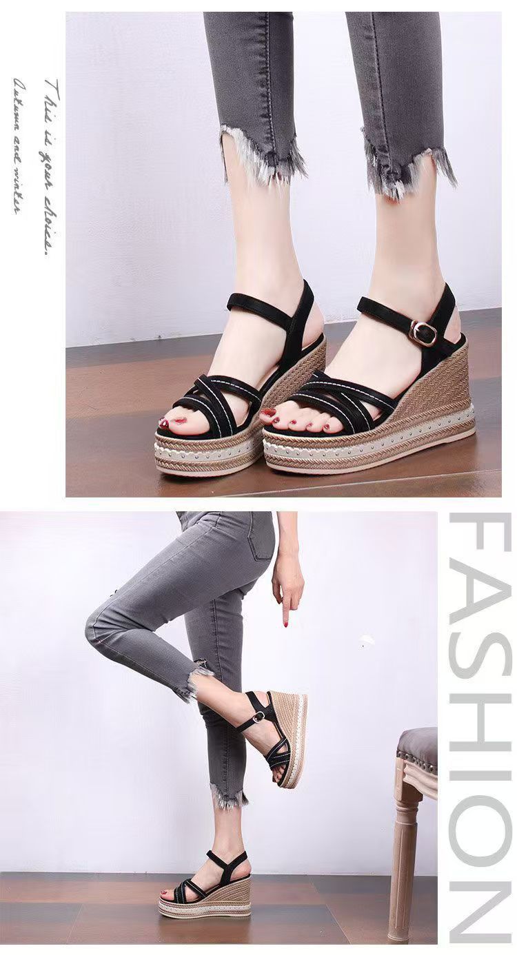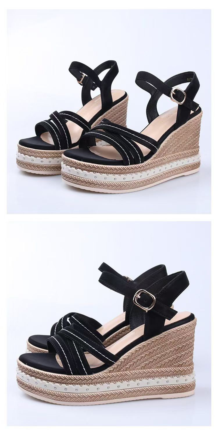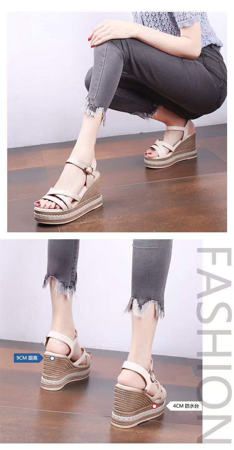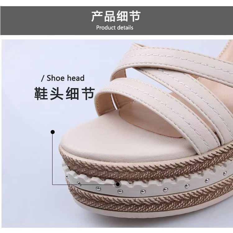 여름 2024 여성을 위한 인터넷 연예인 다용도 웨지 힐 두꺼운 밑창 샌들 새로운 패션 여성 플랫폼 하이힐