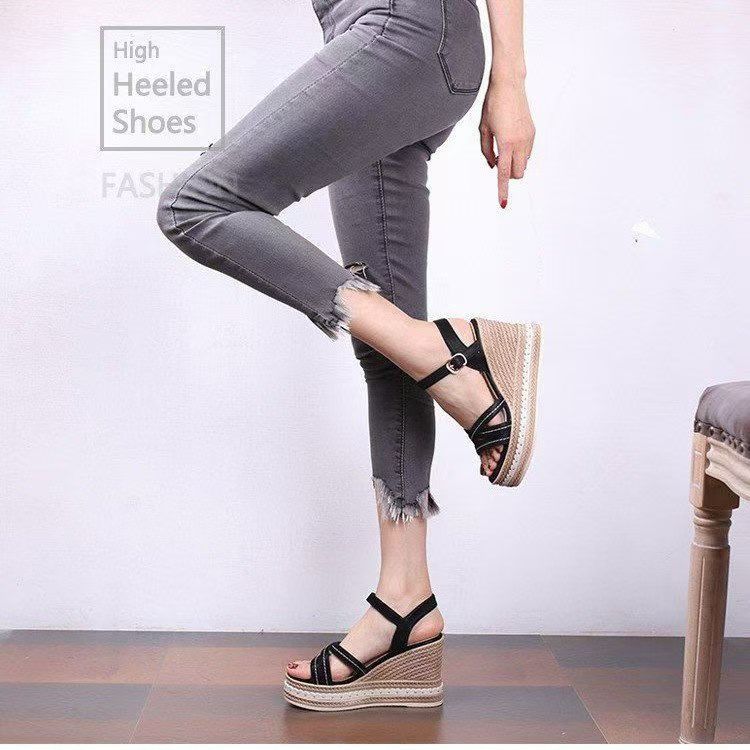 여름 2024 여성을 위한 인터넷 연예인 다용도 웨지 힐 두꺼운 밑창 샌들 새로운 패션 여성 플랫폼 하이힐스토어 가기
