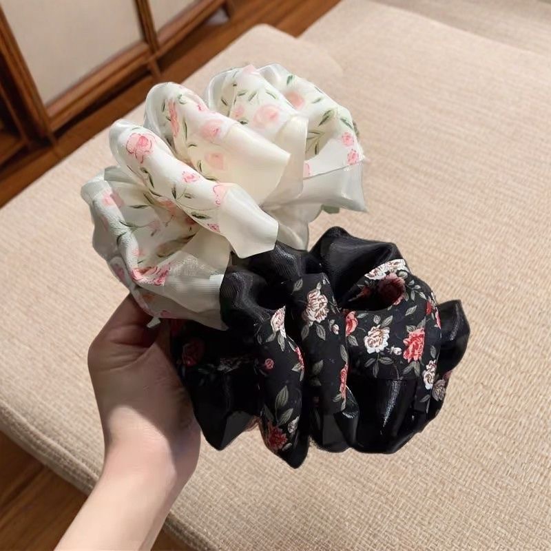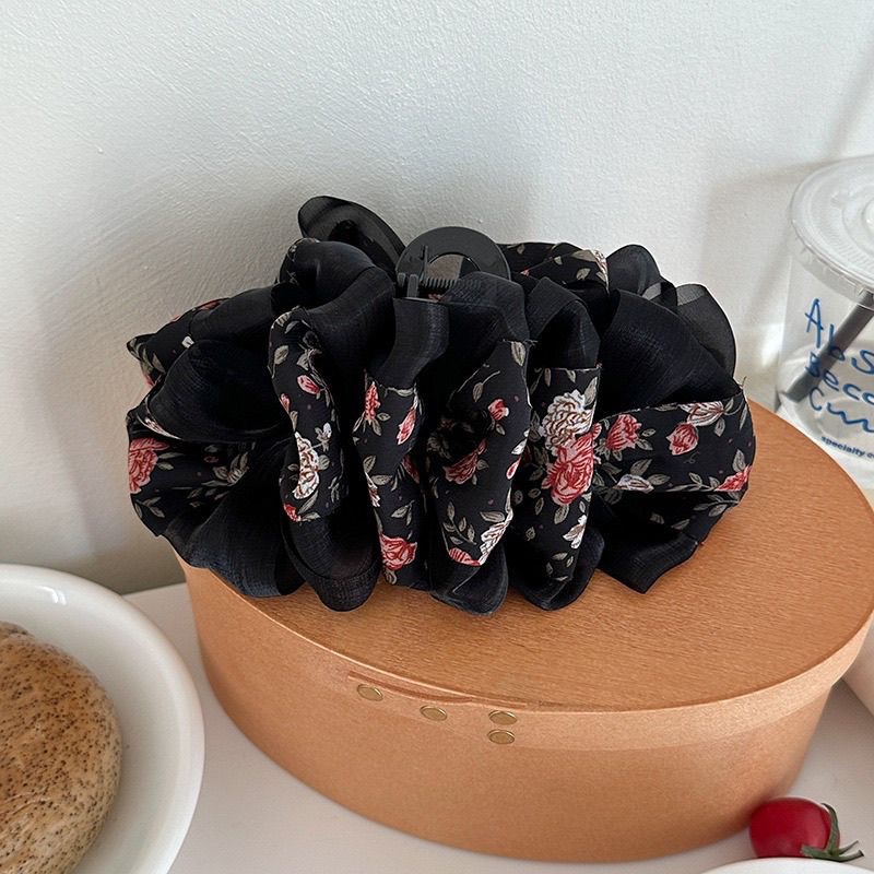 2025 봄 여름 새로운 스타일의 패셔너블하고 신선한 프린트 실크 거즈 버블 클립, 뒷머리에 머리를 묶을 수 있는 샤크 클립, 달콤하고 고급스러운