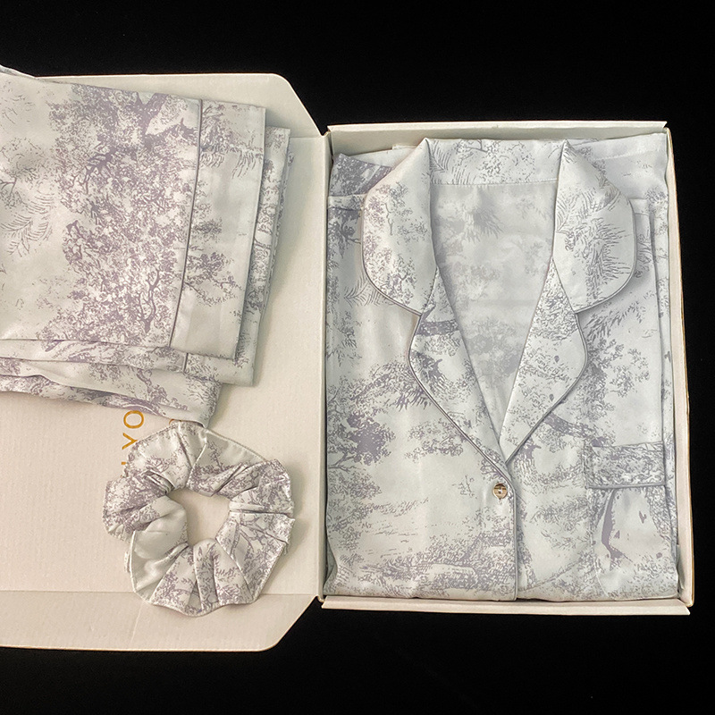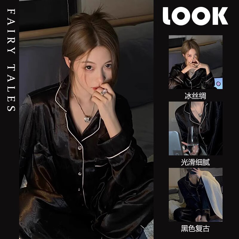 2023 새로운 하이 엔드 봄 가을 잠옷 여성 긴팔 얇은 여성 실크 홈 옷 투피스 세트스토어 가기