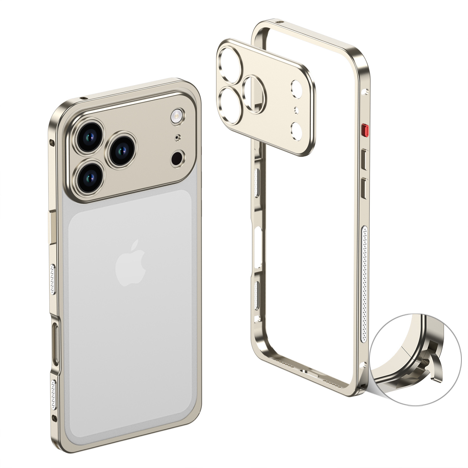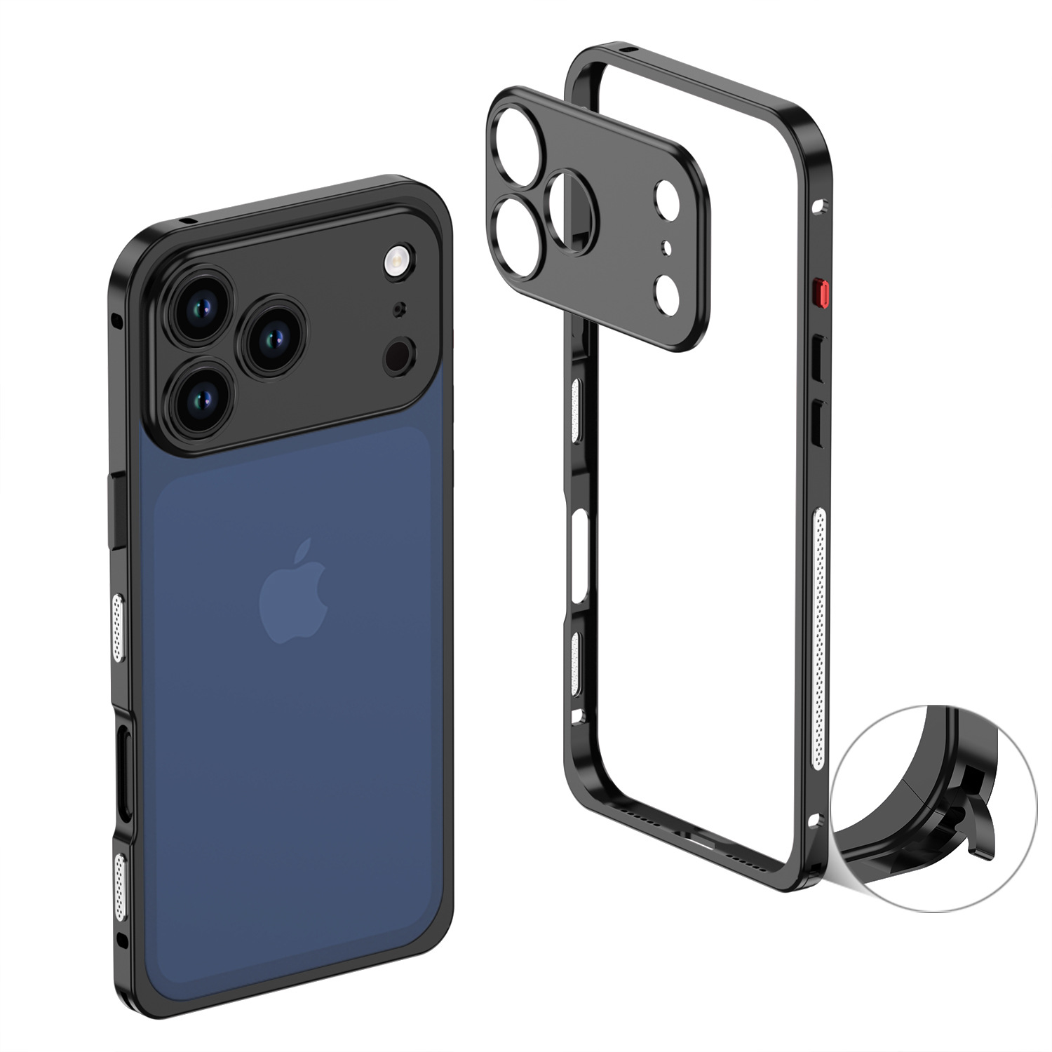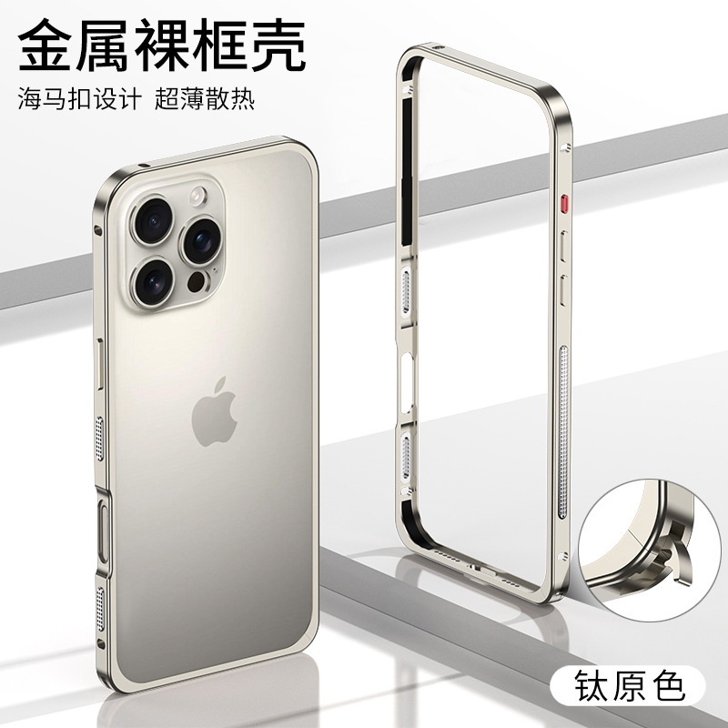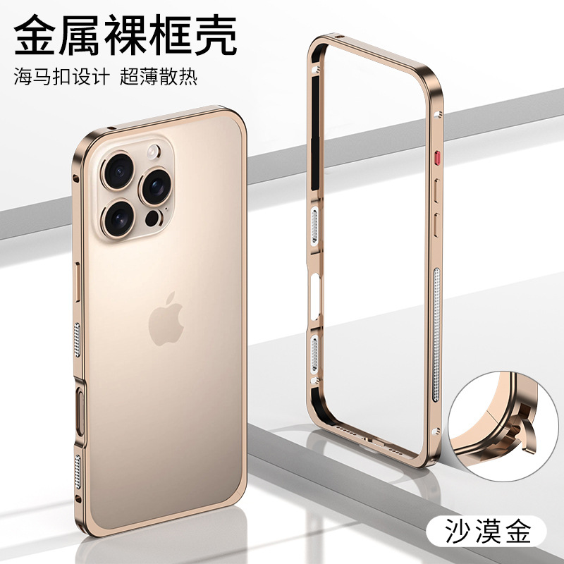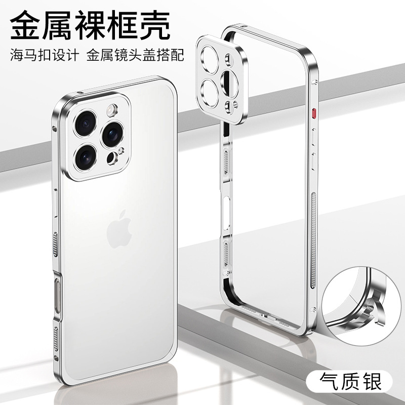 Apple 16 금속 알루미늄 합금 단일 프레임 휴대폰 케이스 낙하 방지 IP15promax 해마 버클 하드웨어 렌즈에 적합