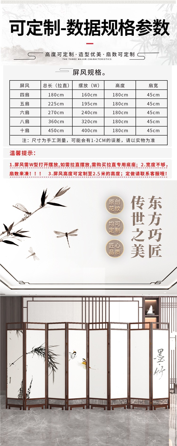 중국 스타일 단단한 나무 스크린 파티션 벽 사무실 접이식 모바일 호텔 홈 거실 마스킹 입구 문 소프트