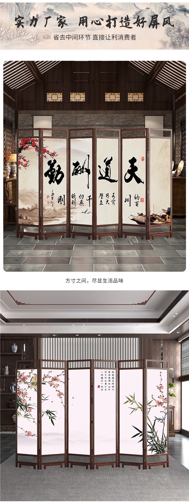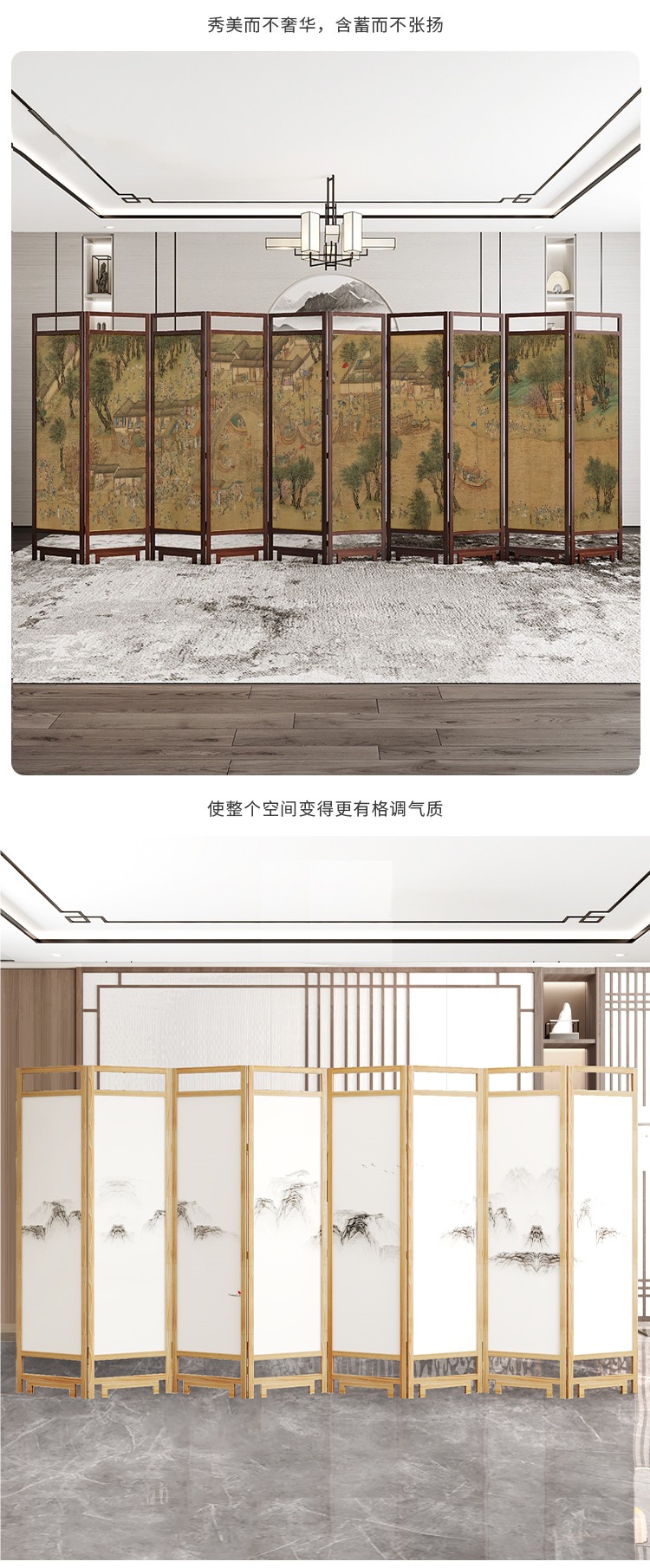 중국 스타일 단단한 나무 스크린 파티션 벽 사무실 접이식 모바일 호텔 홈 거실 마스킹 입구 문 소프트스토어 가기