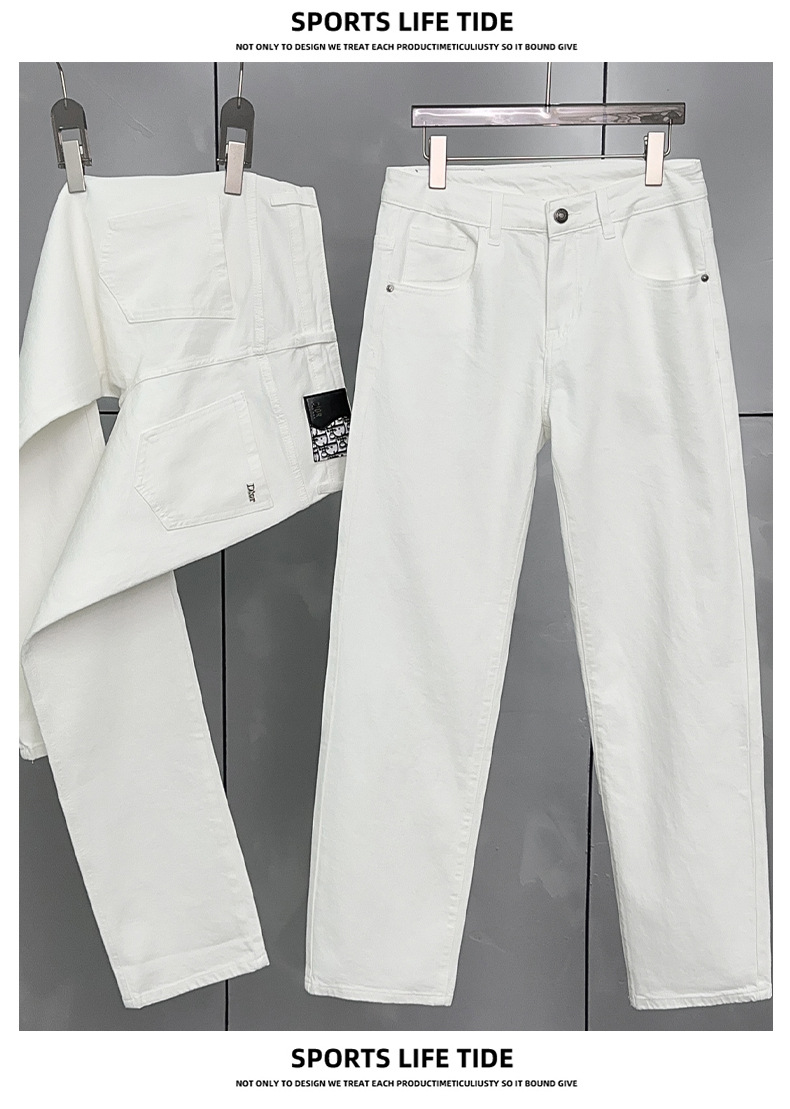 화이트 청바지 남성 여름 스타일 다재다능한 트렌디 하이엔드 트렌디 브랜드 청소년 트렌디 슬림 스트레이트 유럽 스타일 바지