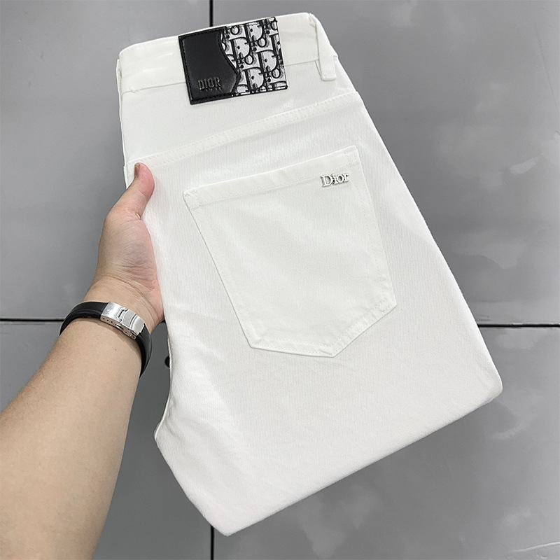 화이트 청바지 남성 여름 스타일 다재다능한 트렌디 하이엔드 트렌디 브랜드 청소년 트렌디 슬림 스트레이트 유럽 스타일 바지스토어 가기