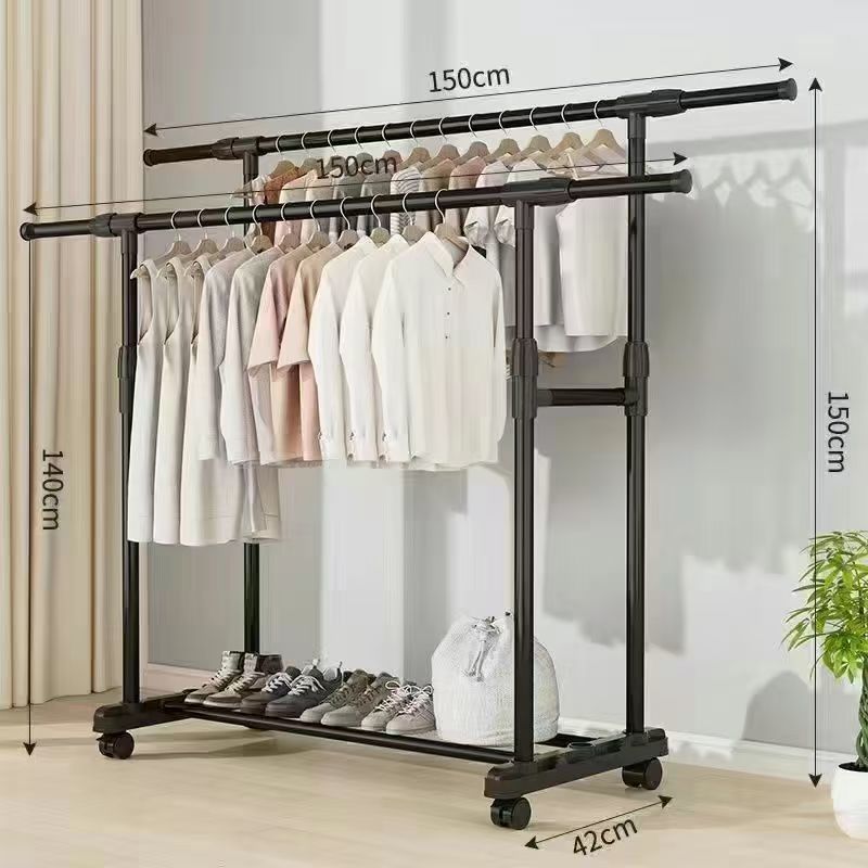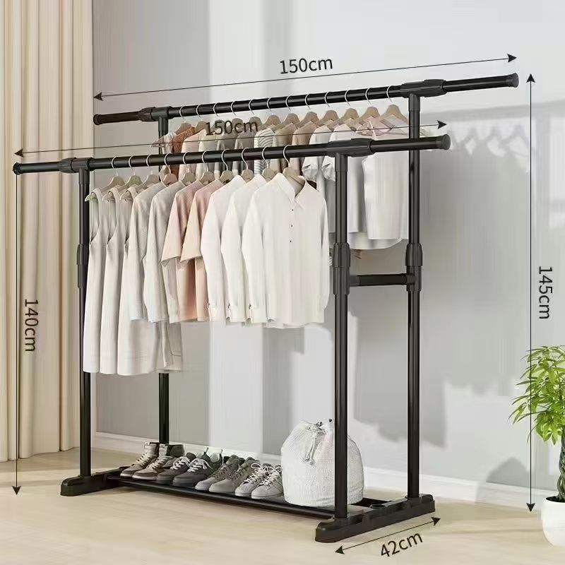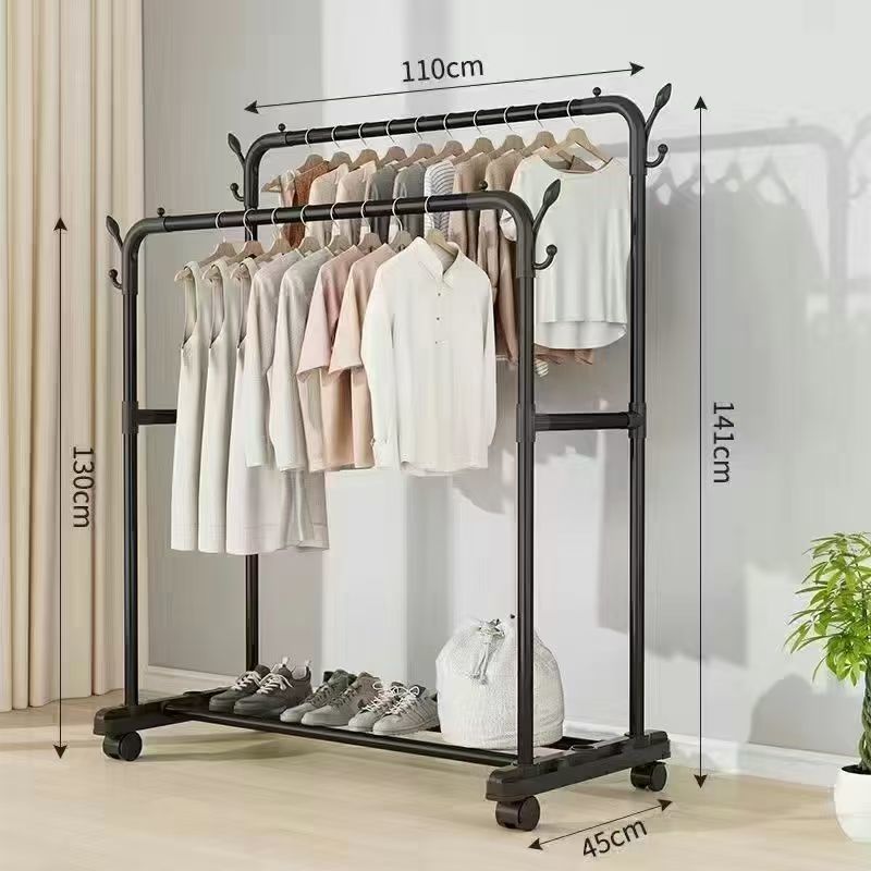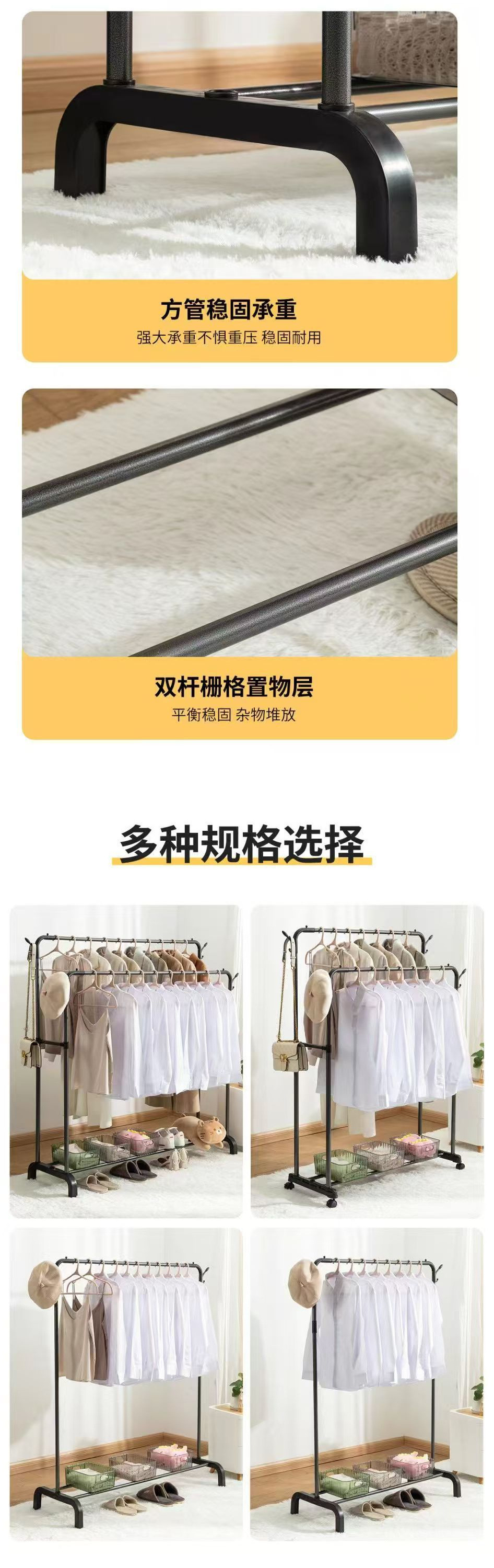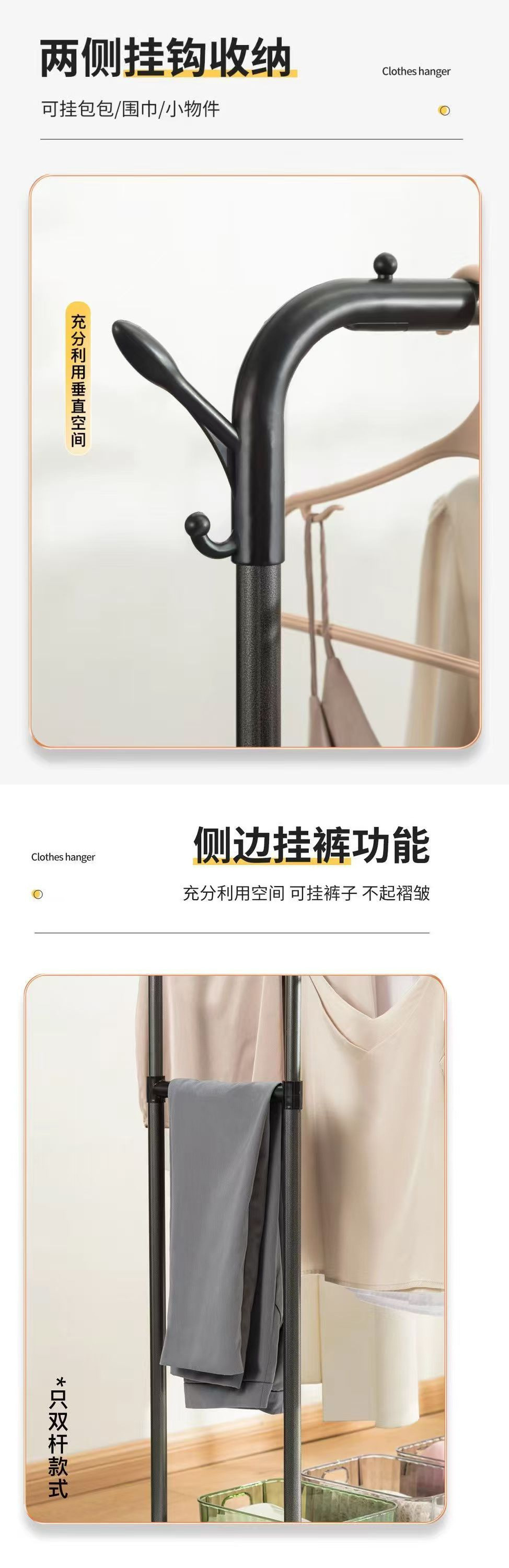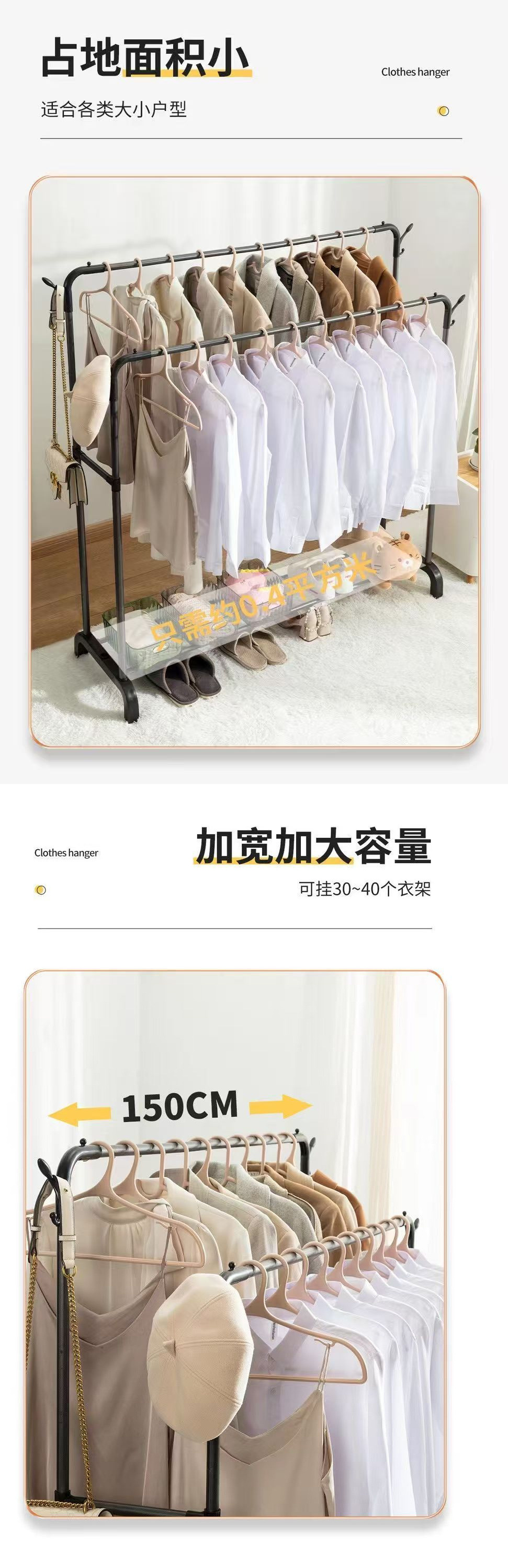 家用晾衣架落地立式加厚加粗收纳架卧室阳台单排双排晒衣服挂衣架