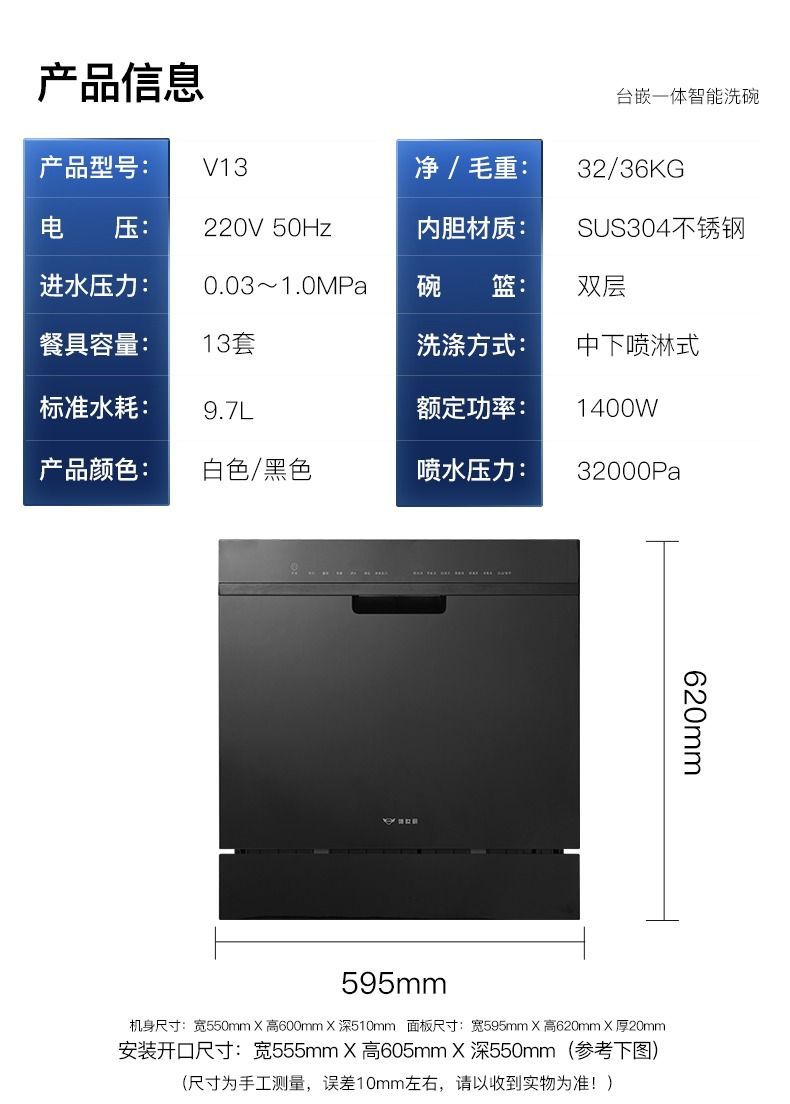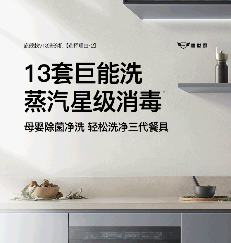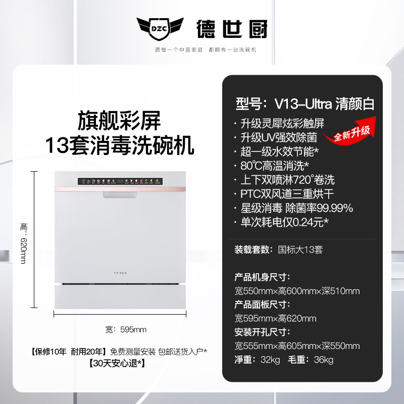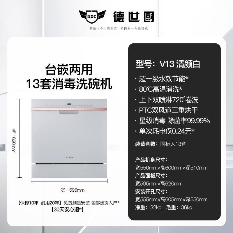 내장형 식기세척기, 물절약 건조, 완전 자동 가정용 Deshi Kitchen 1급 세트, 가성비 좋은 스마트 V13 소독스토어 가기