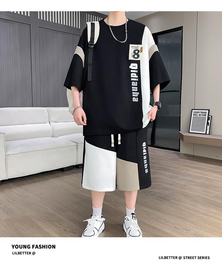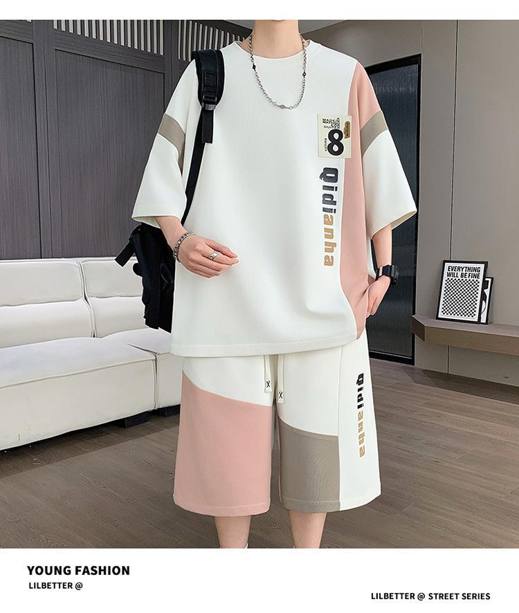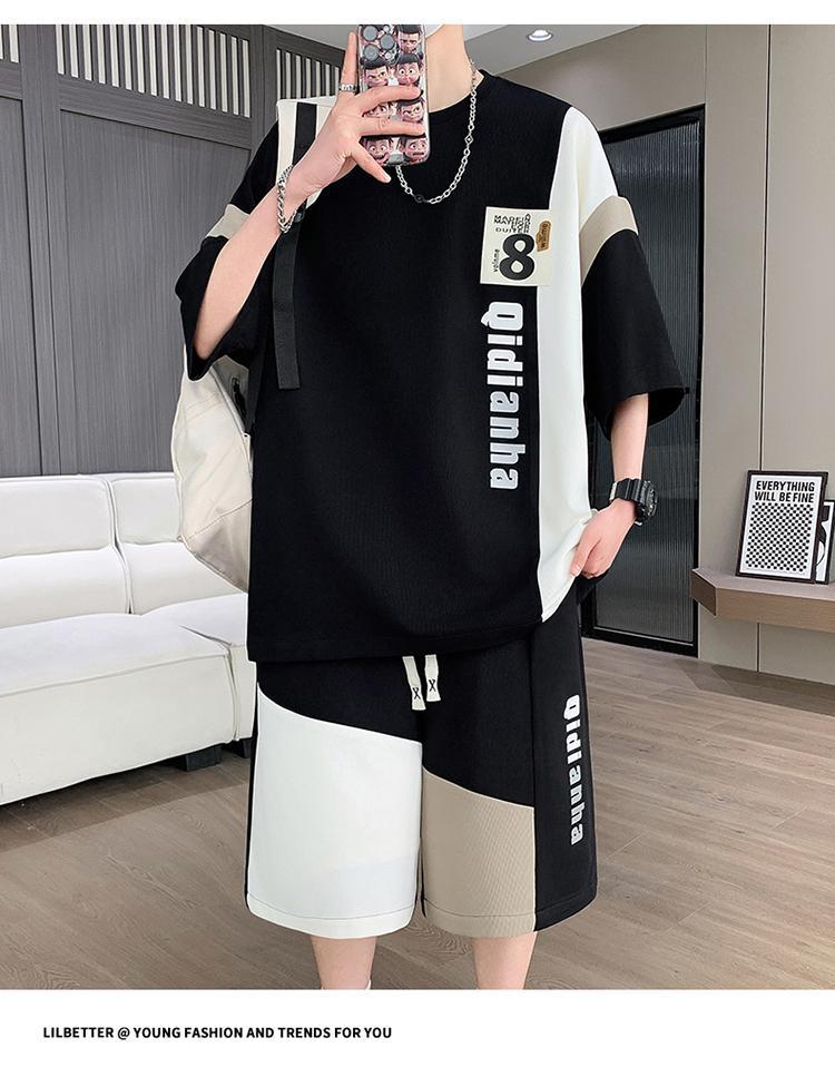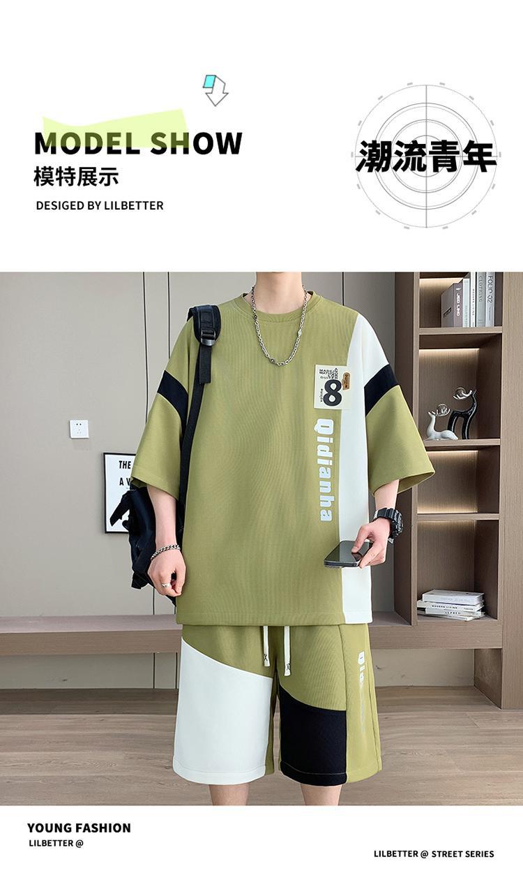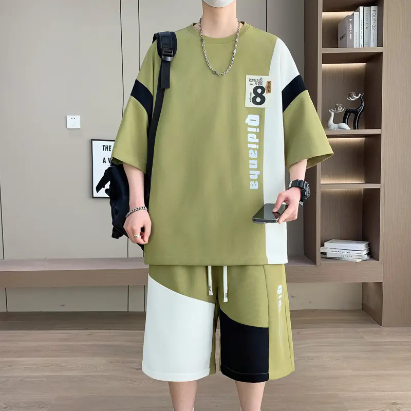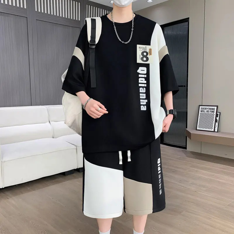 2025 새로운 여름 학생 반팔 티셔츠 남성 유행 5부 소매 탑 반바지 정장 스포츠 및 레저 의류스토어 가기