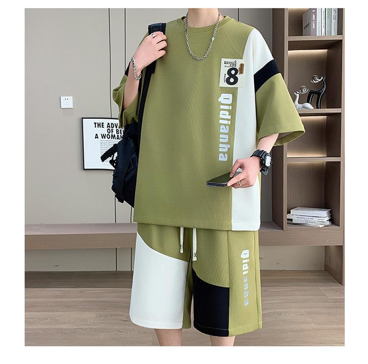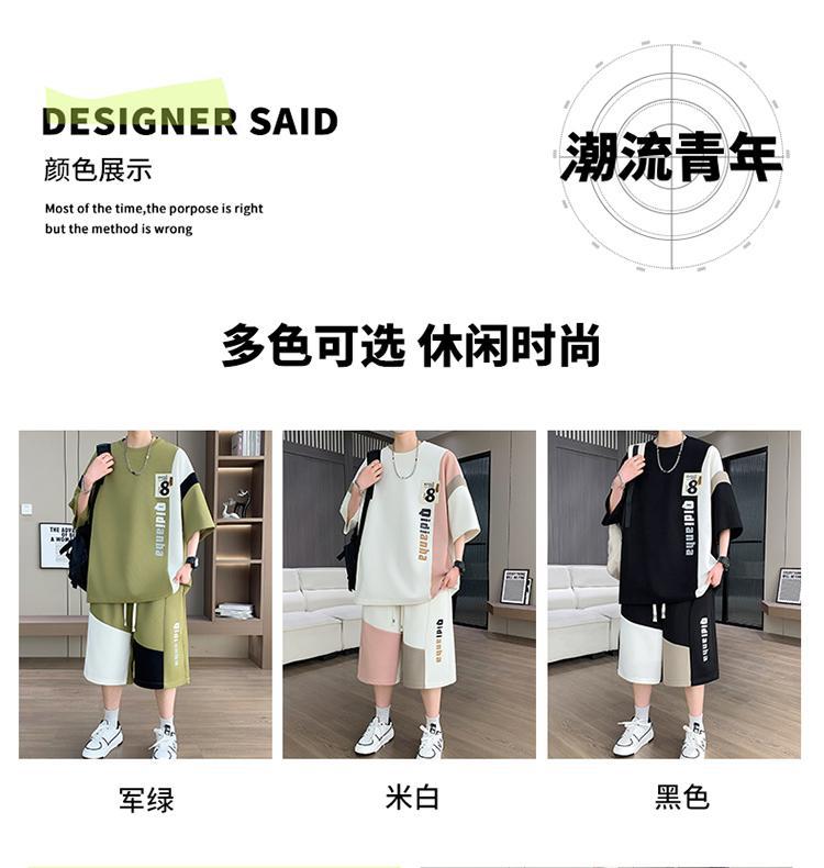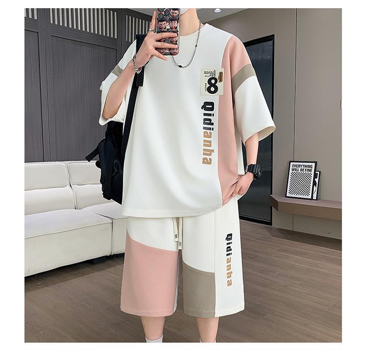 2025 새로운 여름 학생 반팔 티셔츠 남성 유행 5부 소매 탑 반바지 정장 스포츠 및 레저 의류