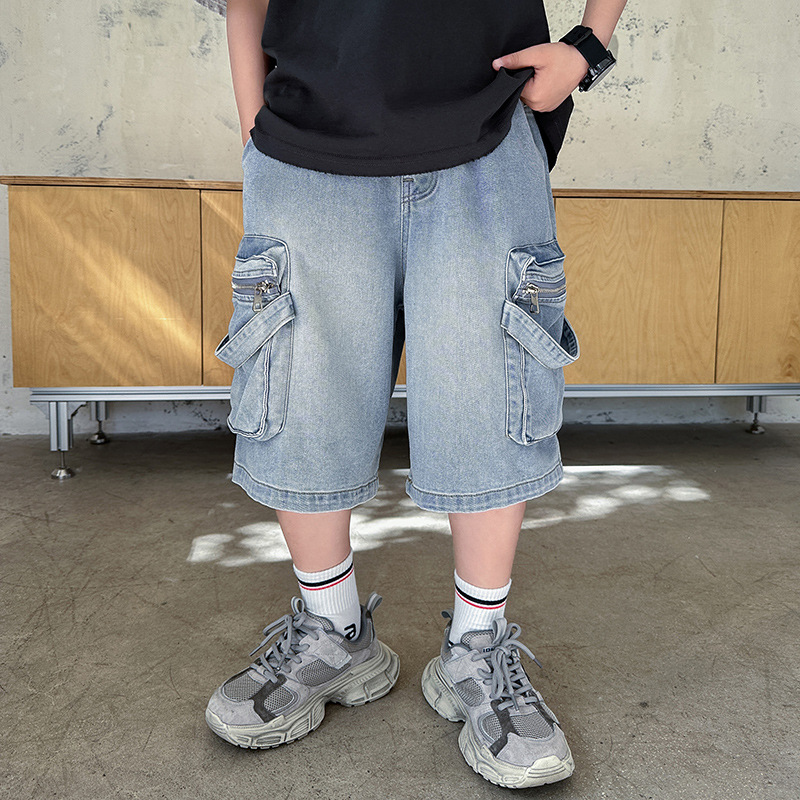 소년 바지 데님 반바지 2025 여름 새로운 어린이 한국 스타일 느슨한 큰 어린이 자른 바지 도매