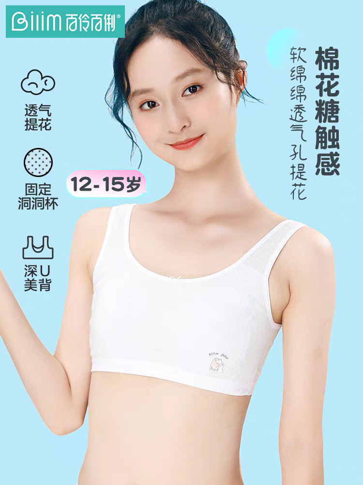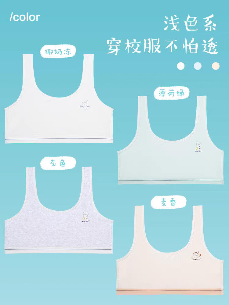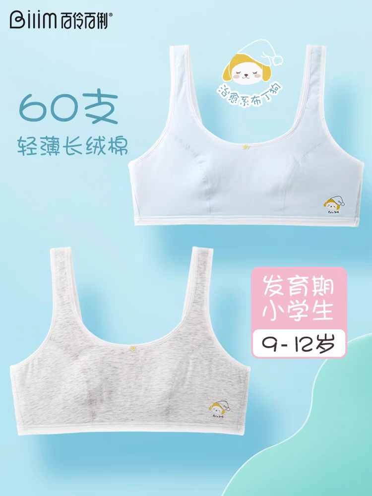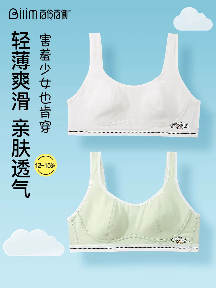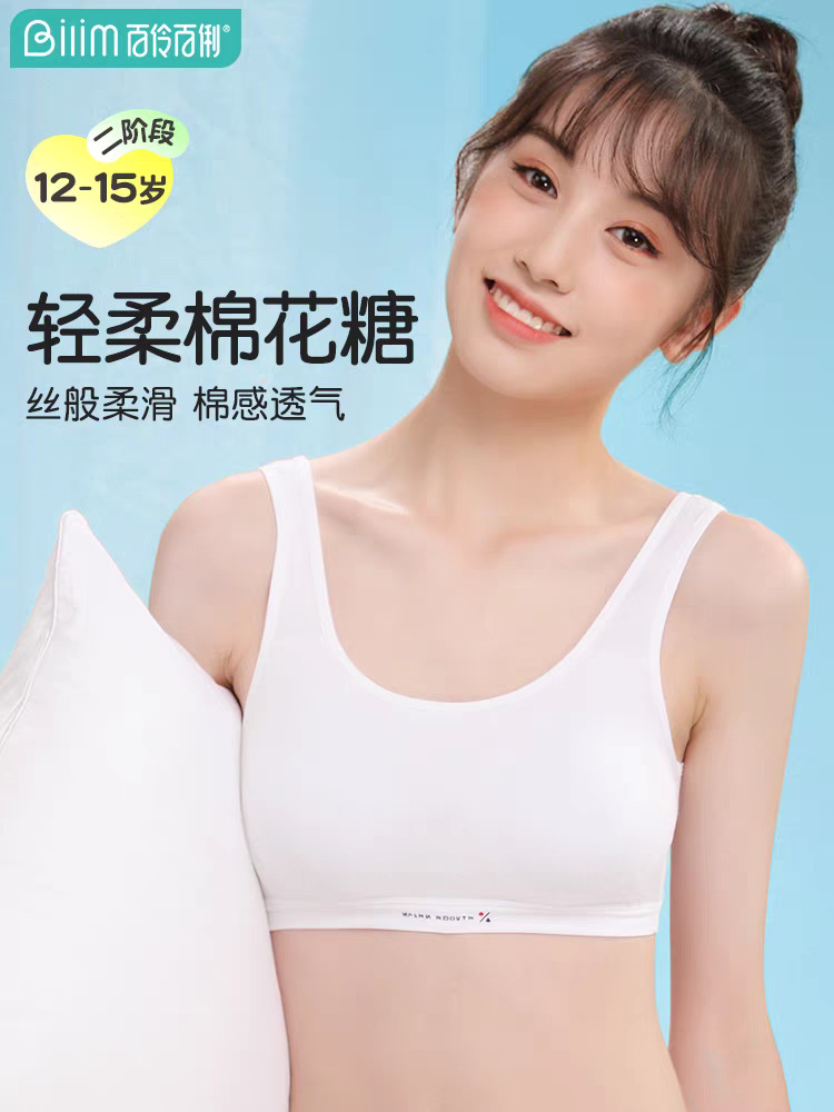 Bailing Baili 소녀 속옷 순면 모달 얼음 실크 발달 기간 학생 브래지어 작은 조끼 안티 볼록스토어 가기