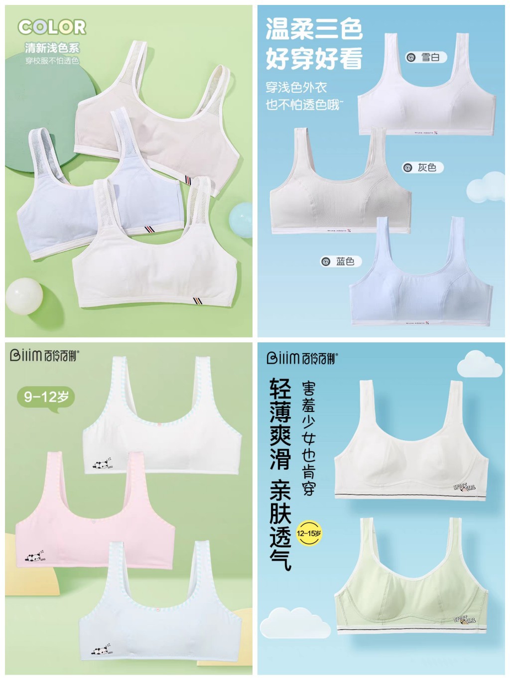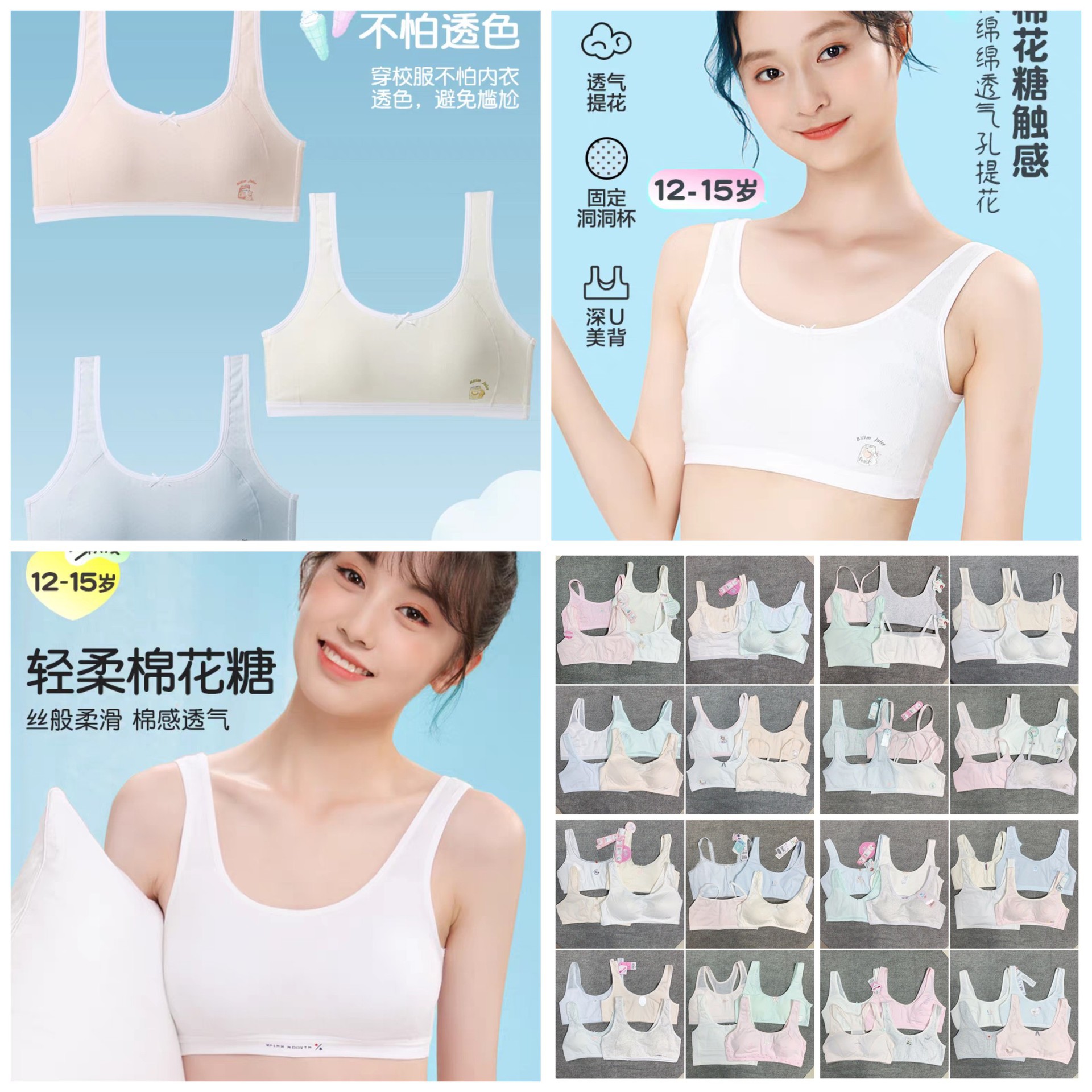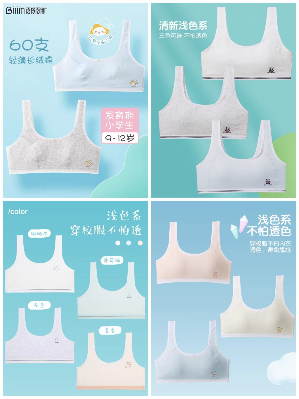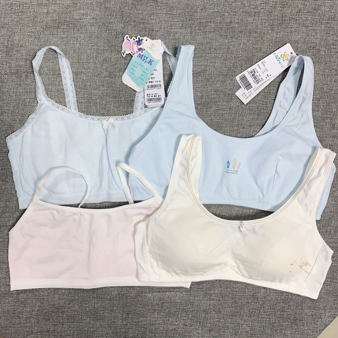 Bailing Baili 소녀 속옷 순면 모달 얼음 실크 발달 기간 학생 브래지어 작은 조끼 안티 볼록스토어 가기