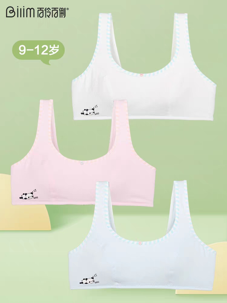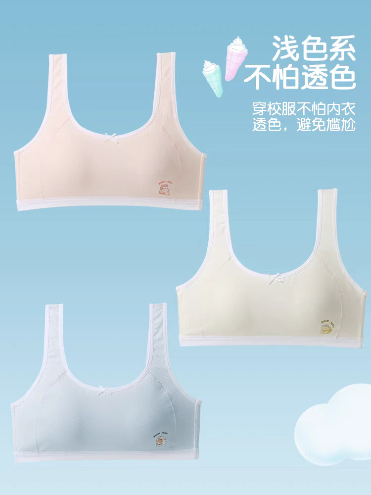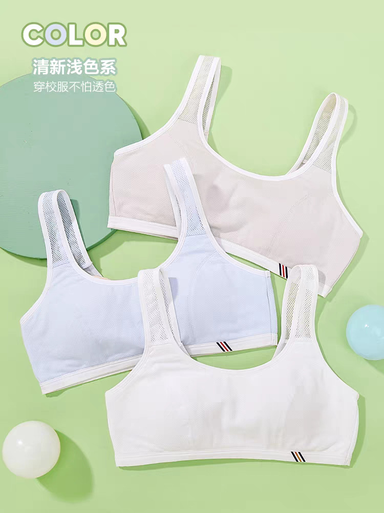 Bailing Baili 소녀 속옷 순면 모달 얼음 실크 발달 기간 학생 브래지어 작은 조끼 안티 볼록