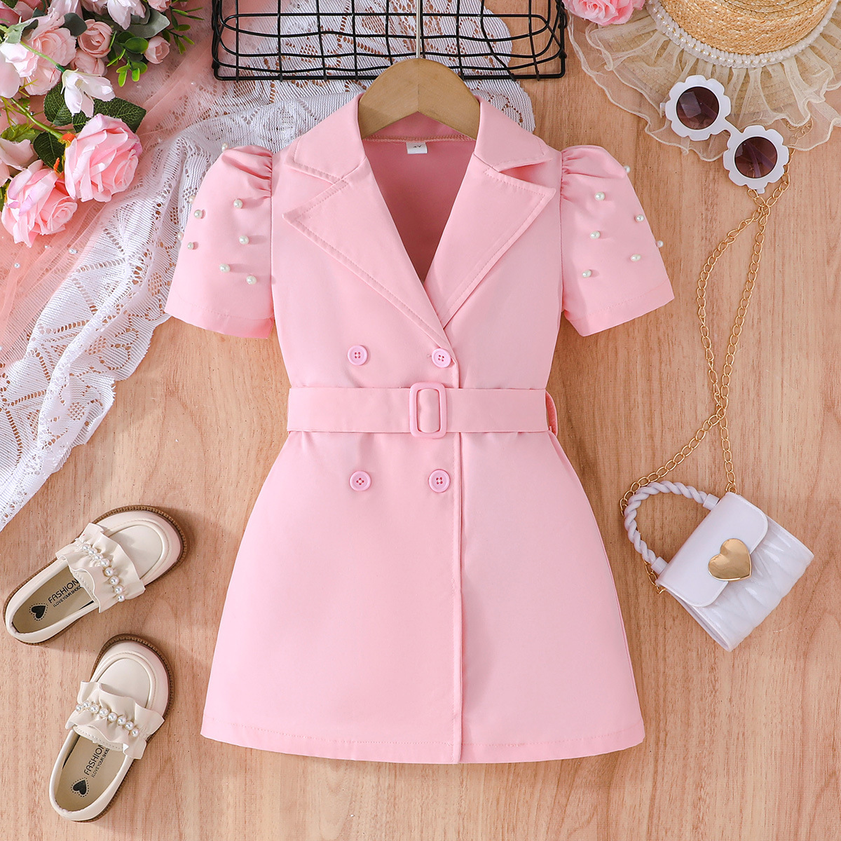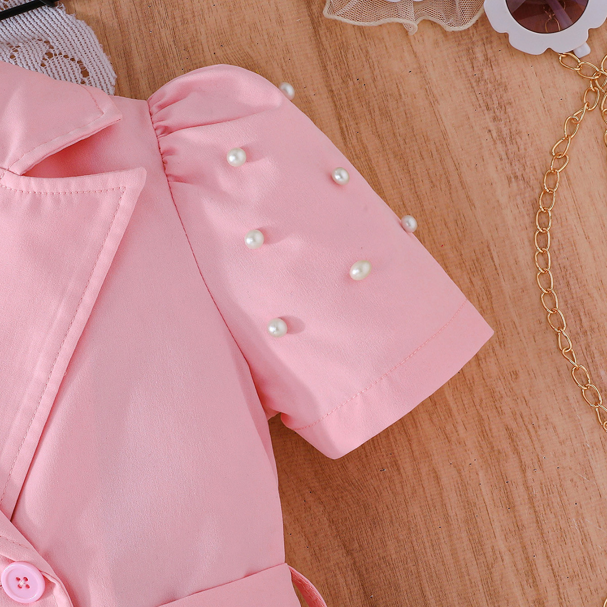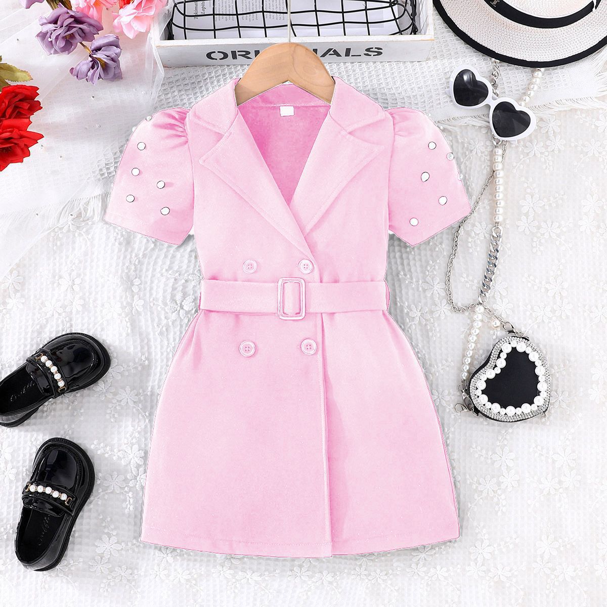 2025 새로운 여름 새 여자 솔리드 컬러 반팔 캐주얼 드레스 + 벨트 투피스 세트