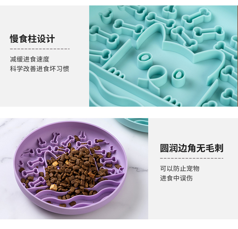 고양이 슬로우 푸드 그릇, 중소형 고양이 및 개 그릇, 질식 방지 목 보호대, 개 사료 그릇, 애완동물 슬로우 푸드 그릇, 미끄럼 방지 및 뒤집힘 방지