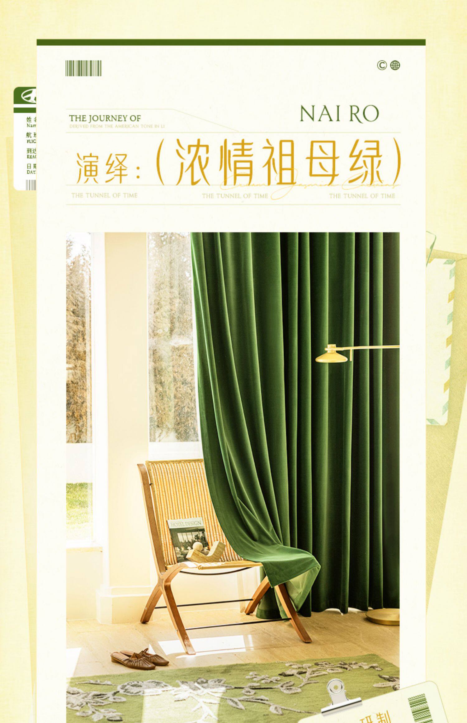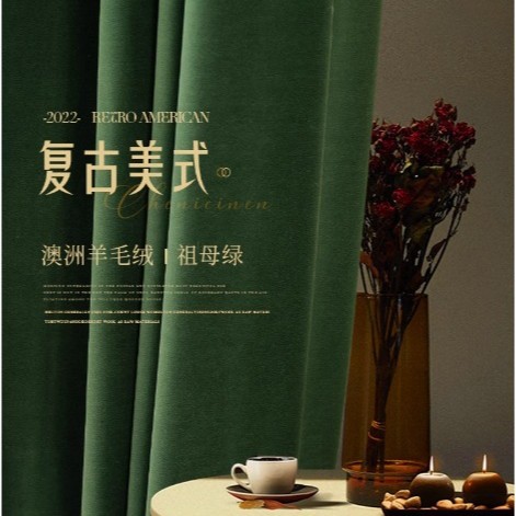 아메리칸 레트로 벨벳 커튼, 가벼운 럭셔리, 모던하고 심플한 하이엔드 거실, 호주산 캐시미어 침실, 차광 카다몬 그린스토어 가기