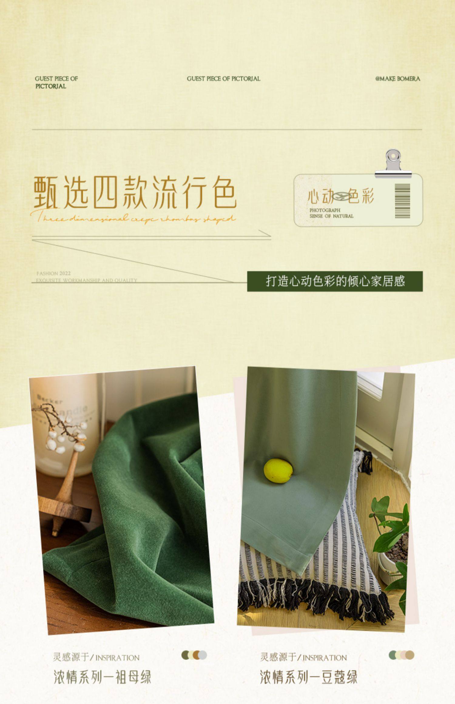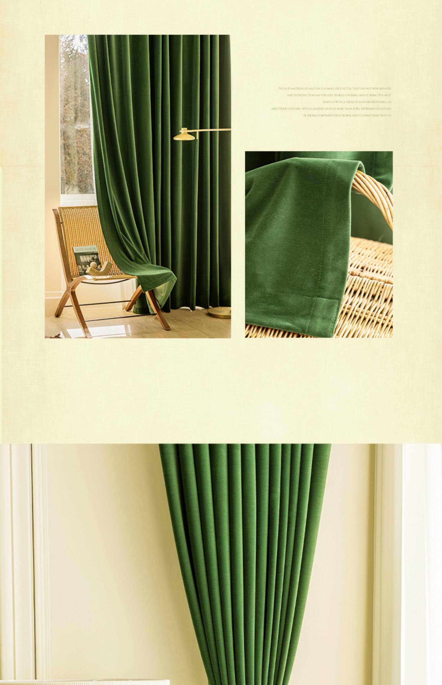 아메리칸 레트로 벨벳 커튼, 가벼운 럭셔리, 모던하고 심플한 하이엔드 거실, 호주산 캐시미어 침실, 차광 카다몬 그린