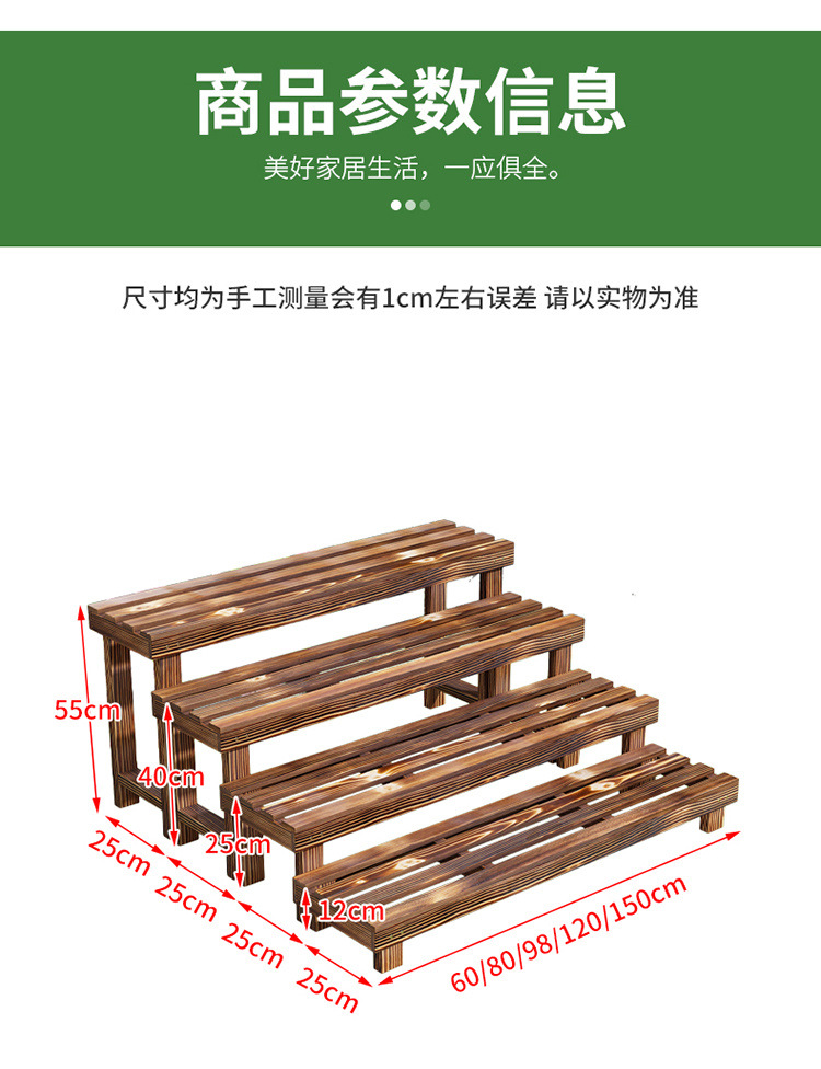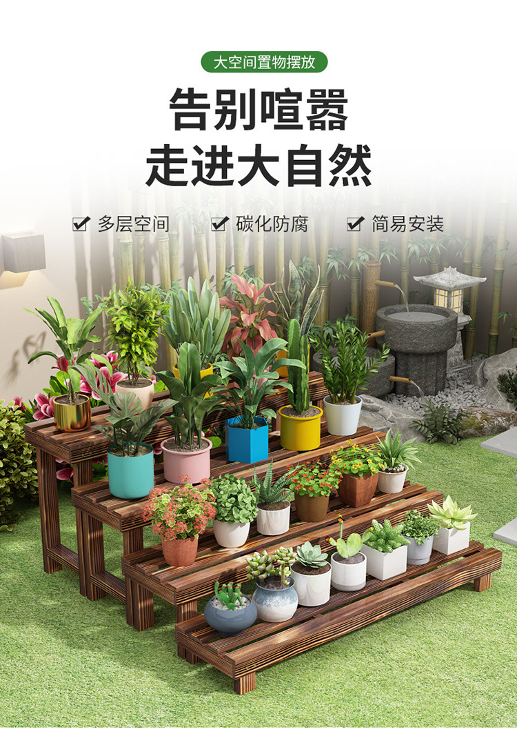 단단한 나무 꽃 스탠드, 화분 선반, 가정용 사다리 다육 식물 다층 발코니 바닥 스탠딩 스토리지 랙, 부식 방지 실내 및 실외스토어 가기