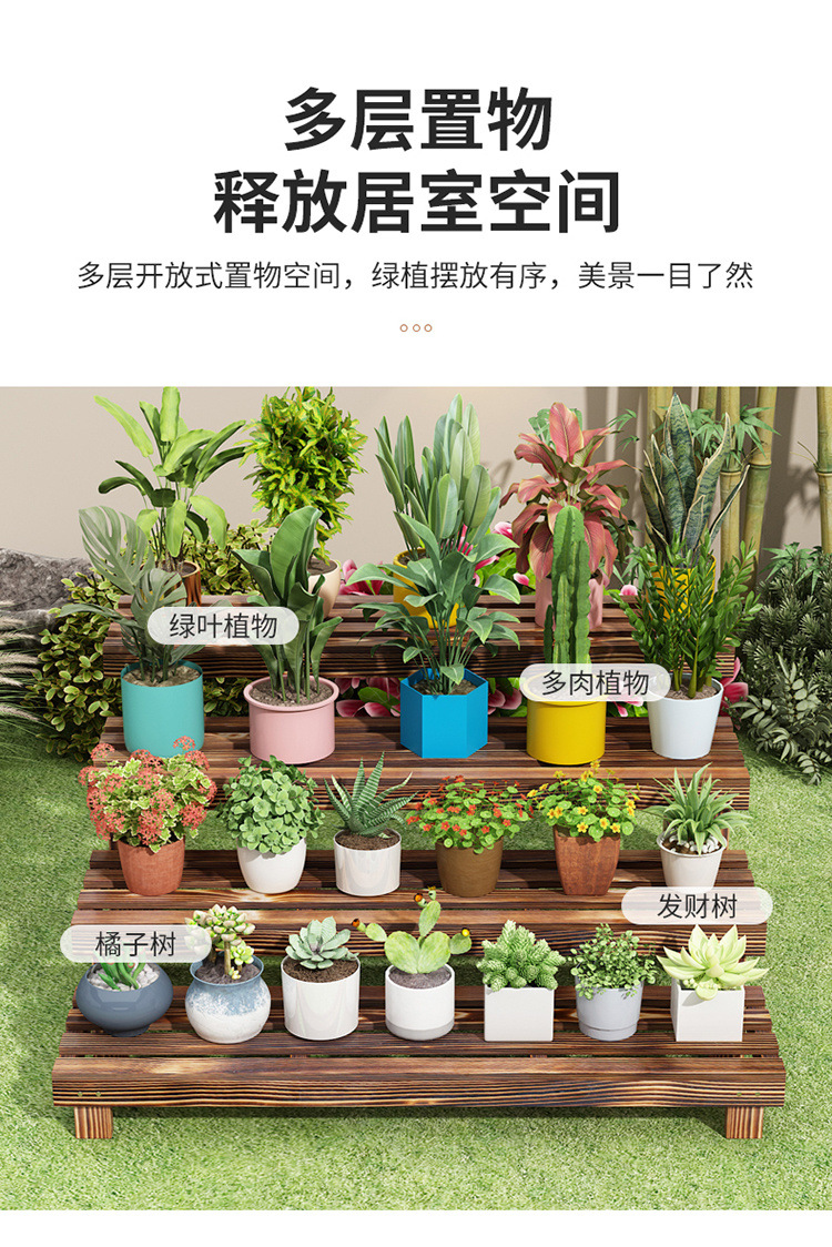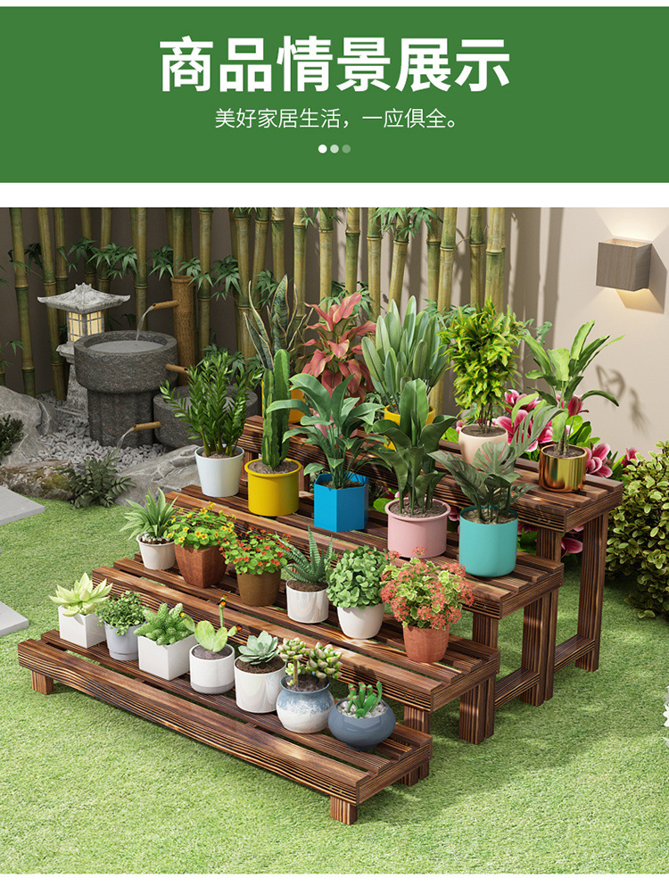 단단한 나무 꽃 스탠드, 화분 선반, 가정용 사다리 다육 식물 다층 발코니 바닥 스탠딩 스토리지 랙, 부식 방지 실내 및 실외