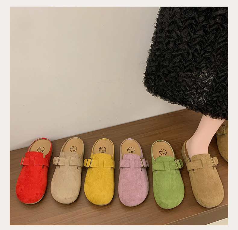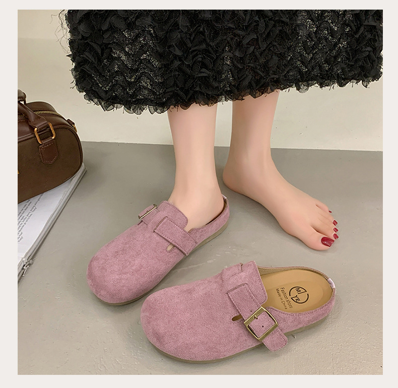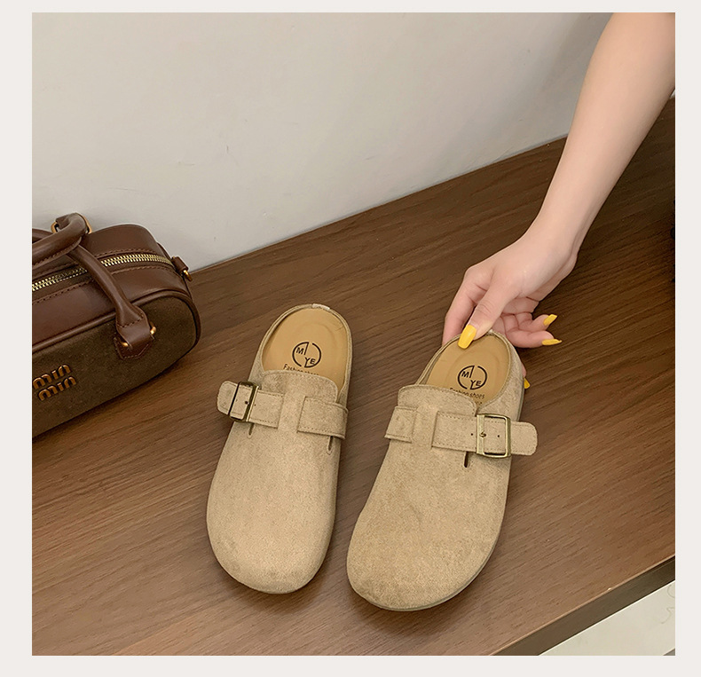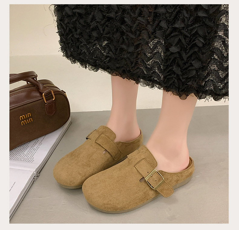 2025 여름 새로운 편안한 게으른 신발 플랫폼 조커 슬리퍼 도매 버클 레트로 버클 바오터우 하프 슬리퍼스토어 가기